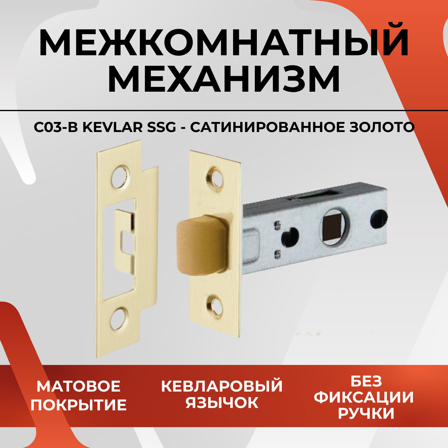 20448 Защелка дверная VETTORE C03-B Kevlar GP Золото для межкомнатных дверей под дверную ручку, пластиковый язычок