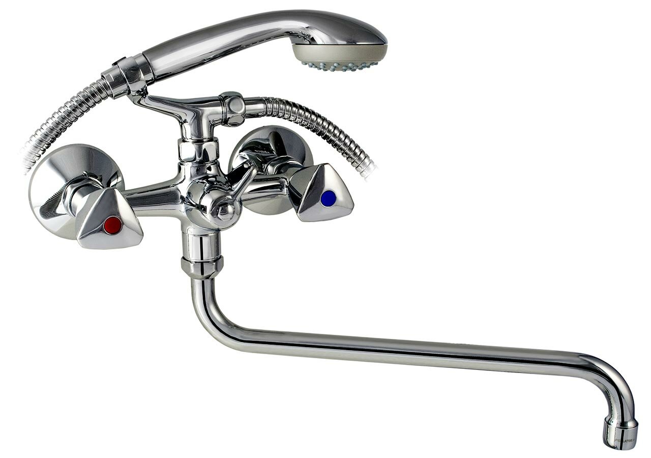 Смеситель для ванны и умывальника двухвентильный с душевой лейкой Mofem 604 E Cer