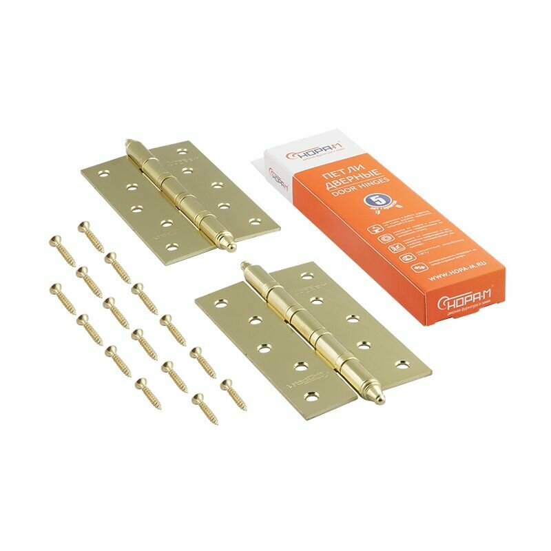 Петли дверные 2 шт. Нора-М 5"-4ВВ универсальные (125х75х2,5) - Золото