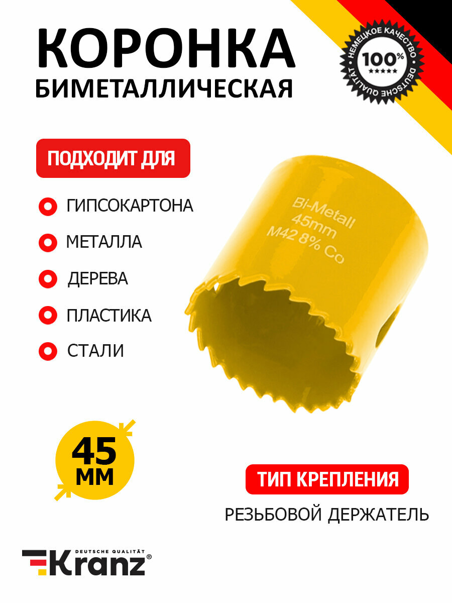 СохранитьКоронка по металлу KRANZ "Bimetal" для создания отверстий диаметром 45 мм, шаг зубьев 4-6 з/д интересное:
