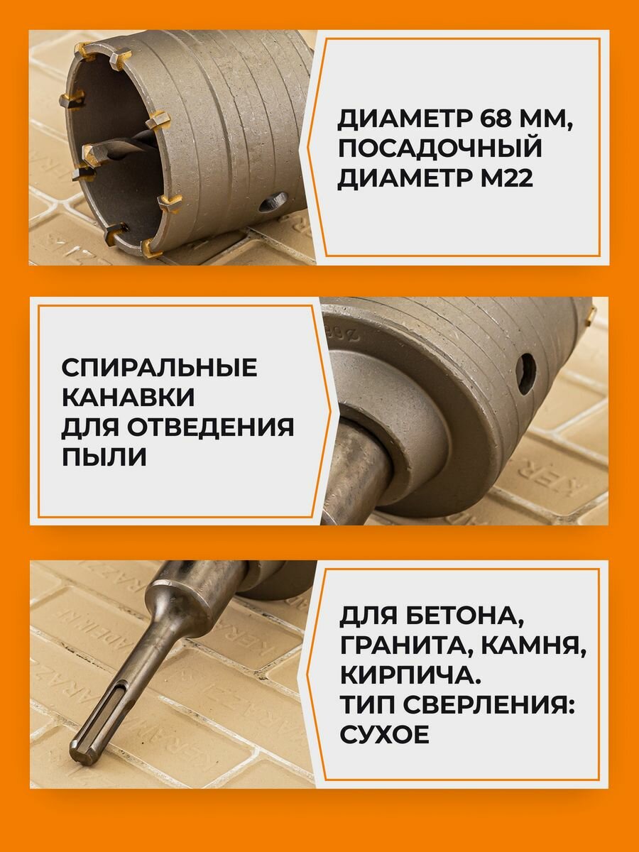 Коронка по бетону Вихрь М22 х 68 мм, SDS PLUS, в сборе, 73/10/9/1