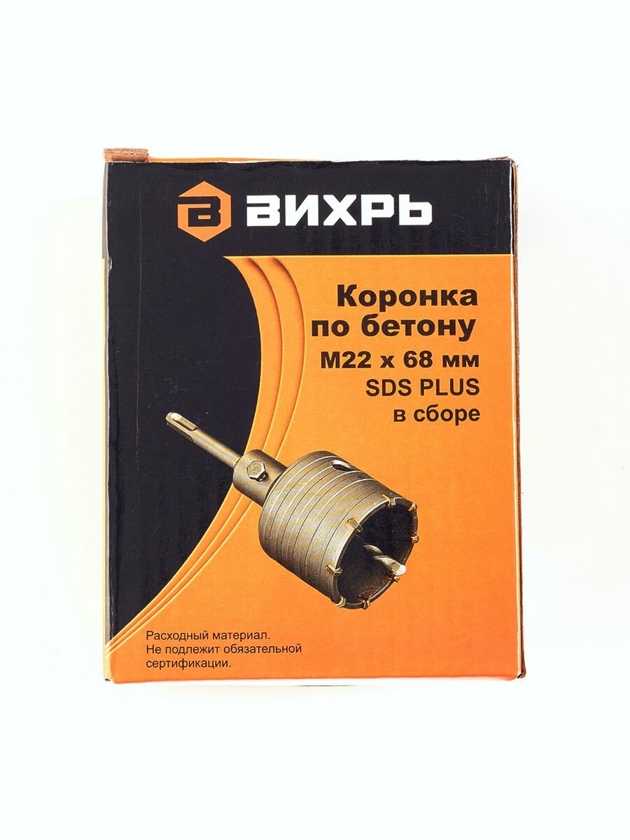 Купить Коронка по бетонуМ22 х 68 ммSDS PLUSв сборе Вихрь
