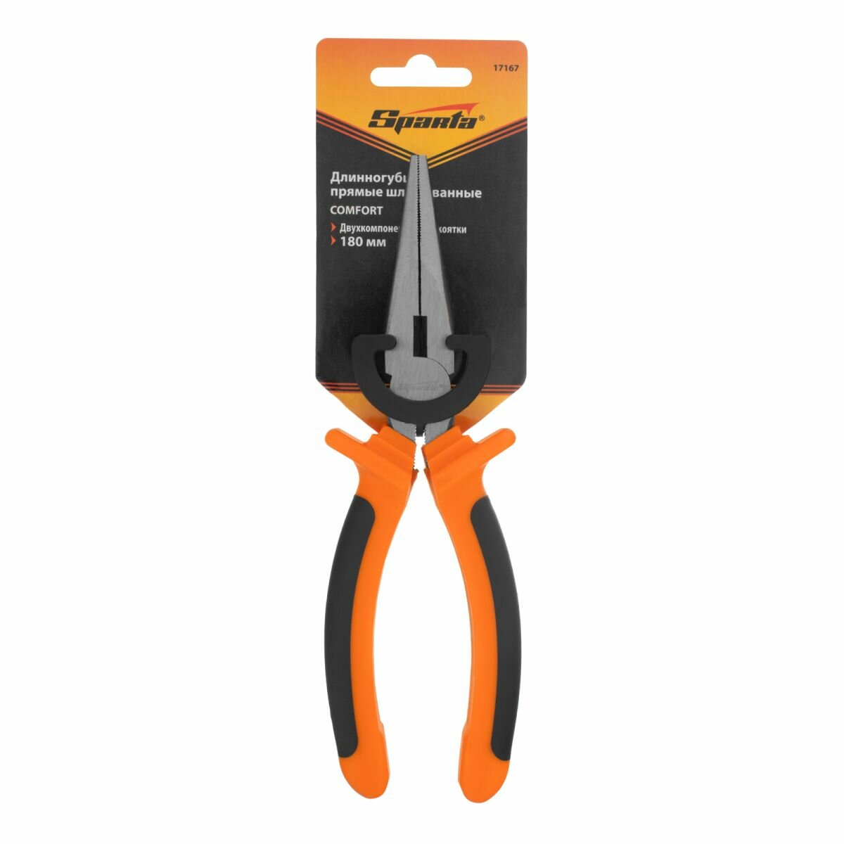 Купить Длинногубцы прямые Comfort, 180 мм, шлифованные, двухкомпонентные рукоятки Sparta