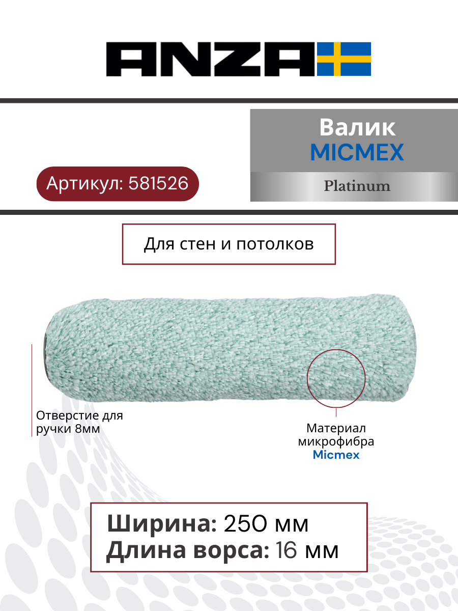 Купить Валик малярный Anza Platinum Микмекс 250/45 мм ворс 16 мм, 581526