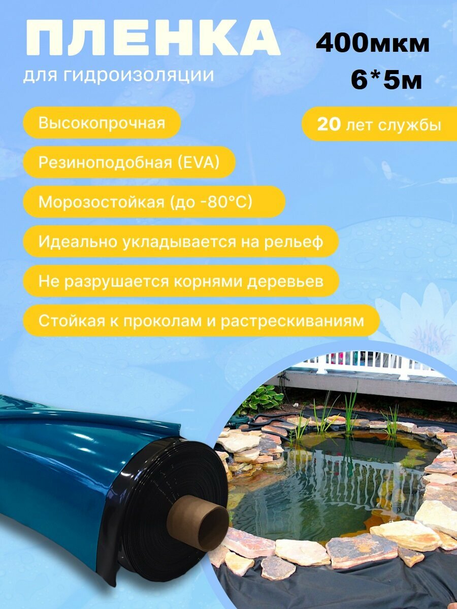 Пленка Водяной 400 мкм 6*7; пленка для строительства; пленка для гидроизоляции; гидроизоляционная пленка; пленка для бассейна для пруда для водоемов