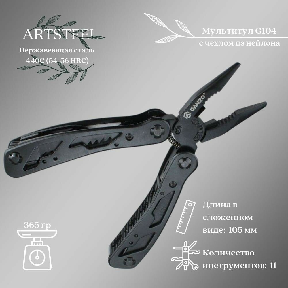 Мультитул Ganzo G104, 105 мм, 12 функций, нейлоновый чехол