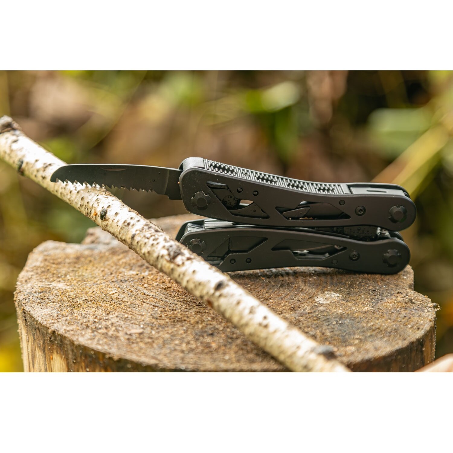 | Минусы: | Лезвие ножа в сложеном состоянии косается металла и постоянно тупится, длина инструментов могла бы на 1-1.5см быть побольше. Пила - чисто номинальная и по длине, и по заточке. Внутренняя сторона ручек с мелкой насечкой и очень пологая, ей невозможно даже крышку пластковой бутылки отвернуть, не говоря уже о чем-то посерьезнее. |