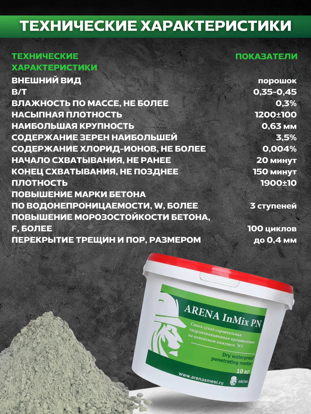 Проникающая гидроизоляция для бетона Arena inMix PN, 10 кг интересное: