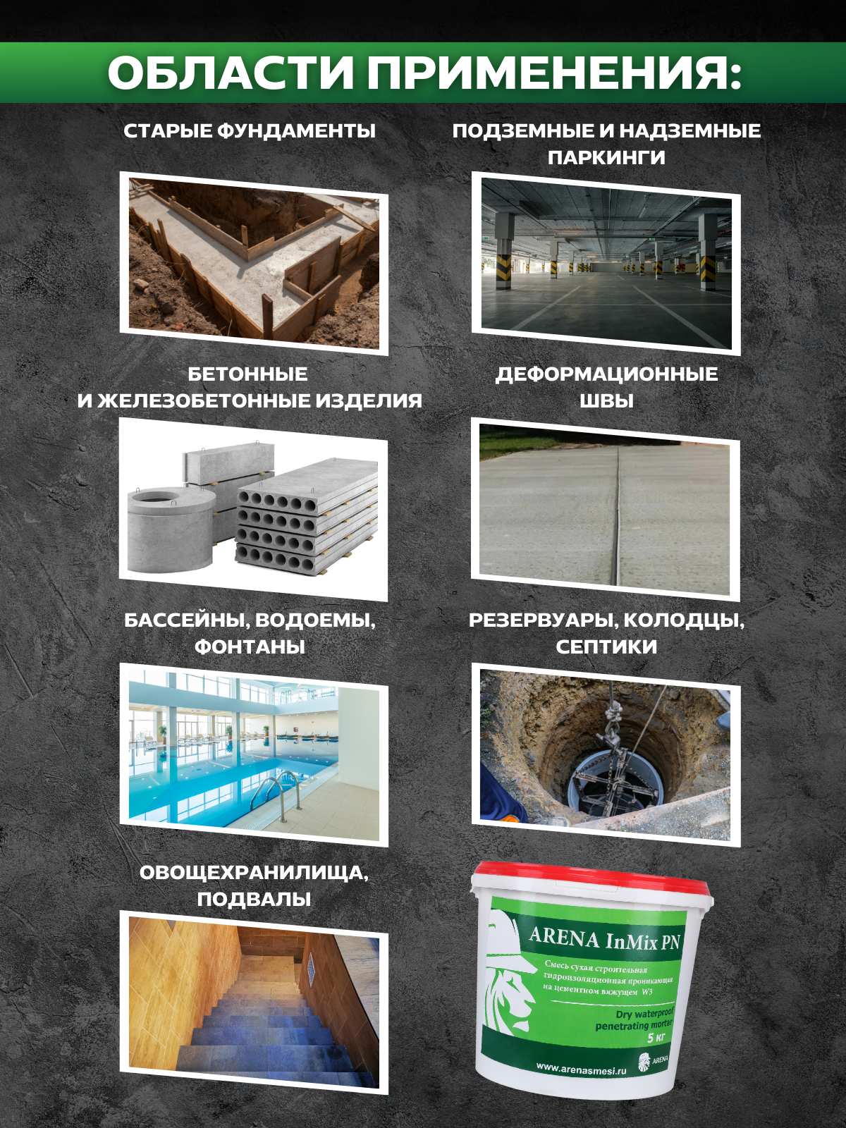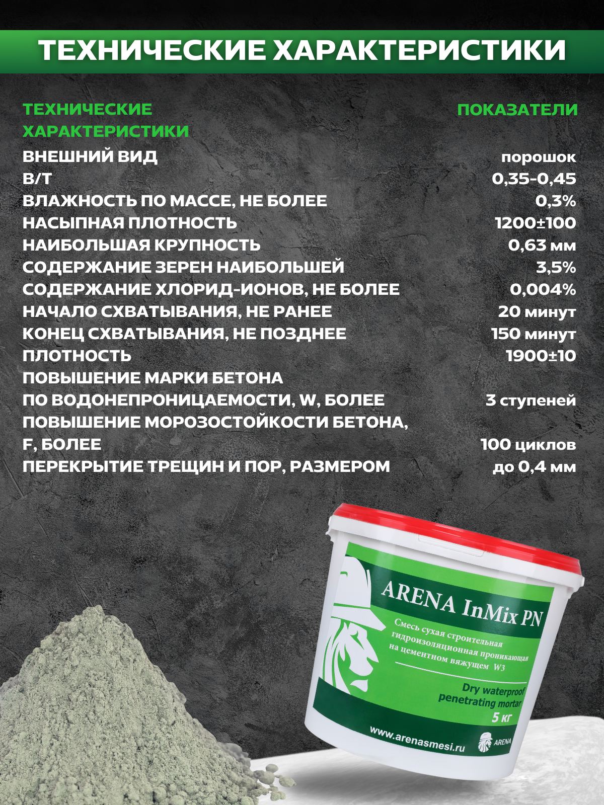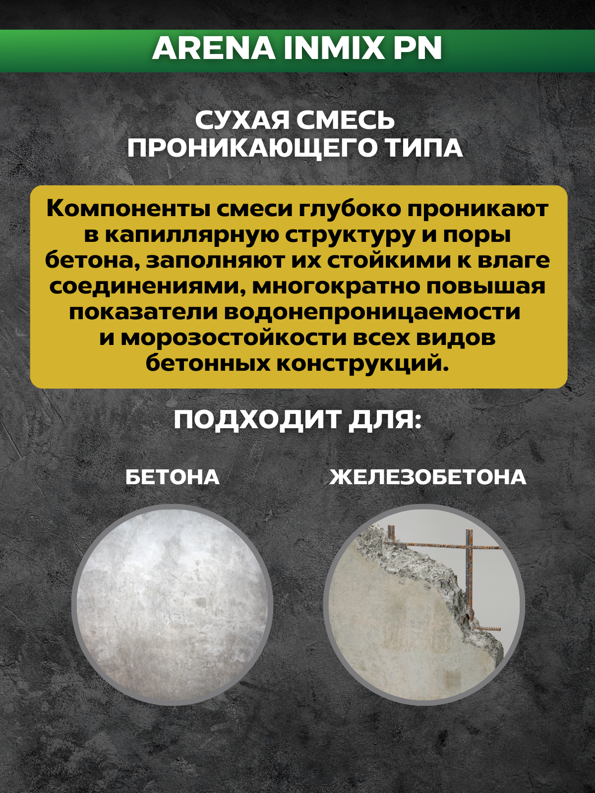 Проникающая гидроизоляция для бетона Arena inMix PN, 5 кг интересное: