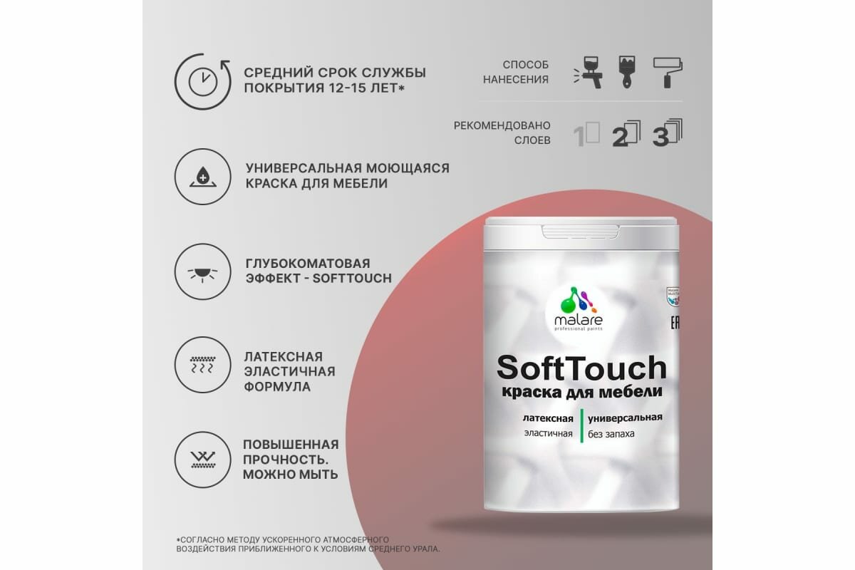 Акриловая краска для мебели Malare SoftTouch для кухонных фасадов для дерева и МДФ, моющаяся быстросохнущая, матовая, алое танго, 10 кг.