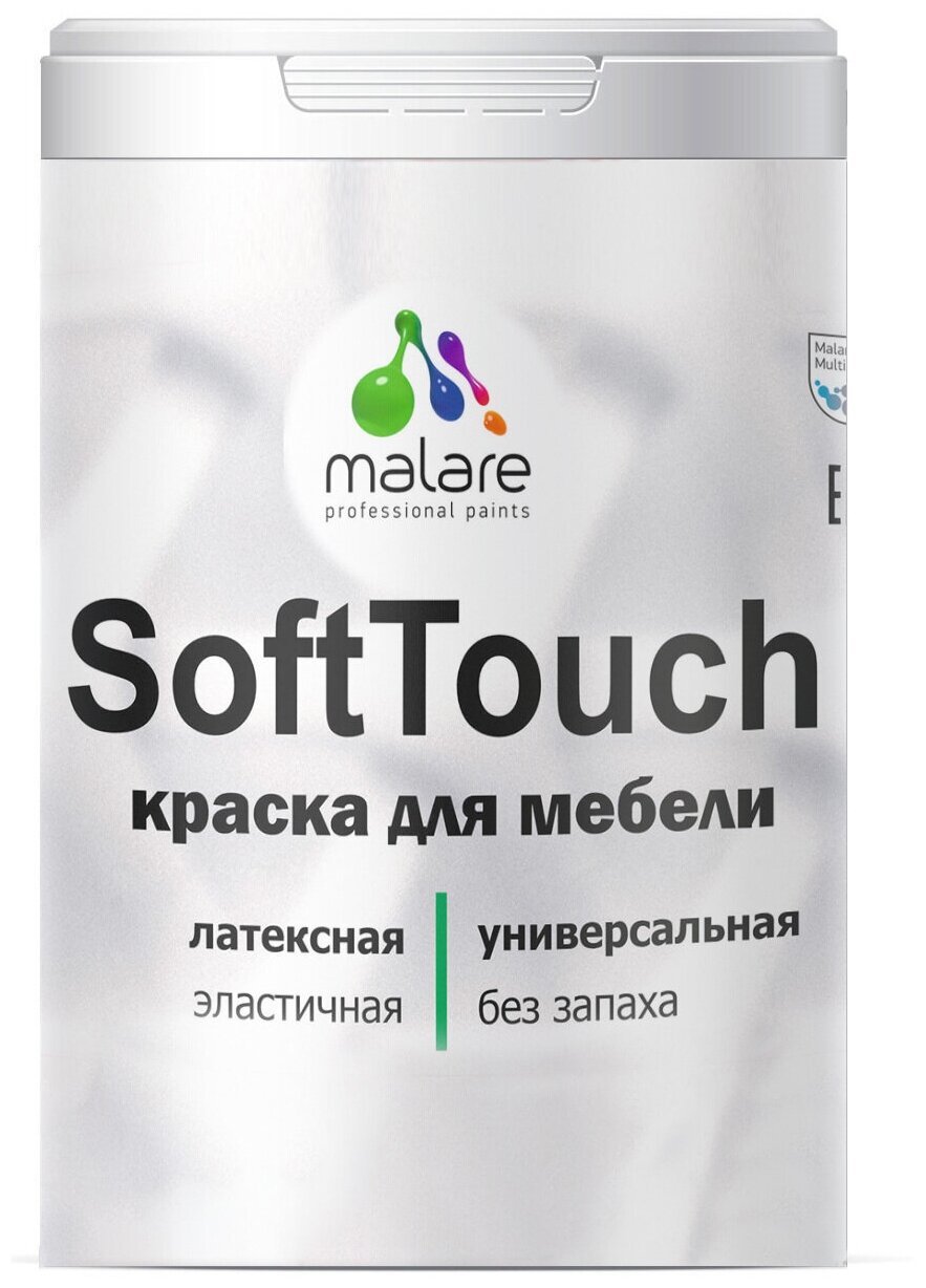 Акриловая краска для мебели Malare SoftTouch для кухонных фасадов для дерева и МДФ, моющаяся быстросохнущая, матовая, белый, 0.5 кг