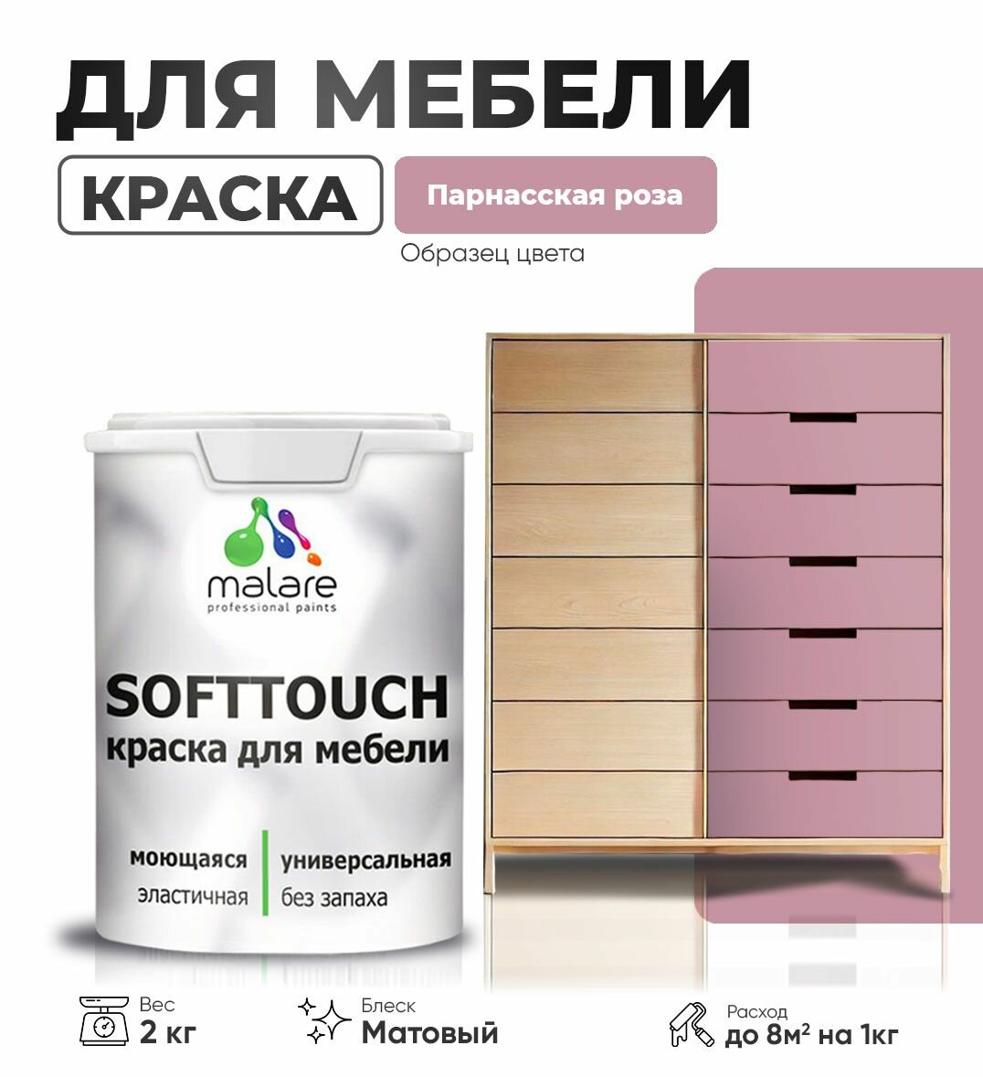 Купить Акриловая краска для мебели Malare SoftTouch для кухонных фасадов для дерева и МДФ, моющаяся быстросохнущая, матовая, парнасская роза, 2 кг.