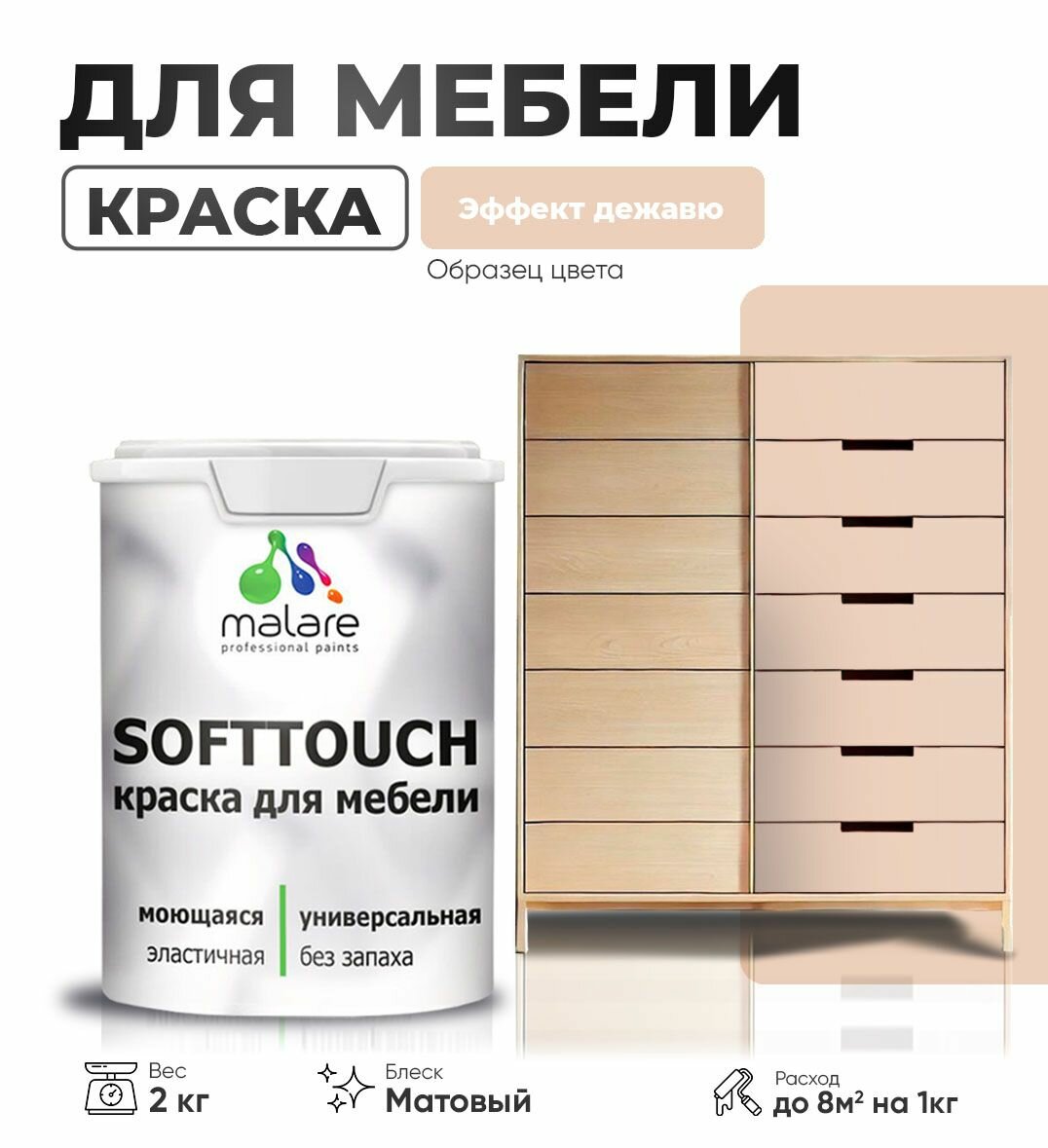 Купить Акриловая краска для мебели Malare SoftTouch для кухонных фасадов для дерева и МДФ, моющаяся быстросохнущая, матовая, эффект дежавю, 2 кг.