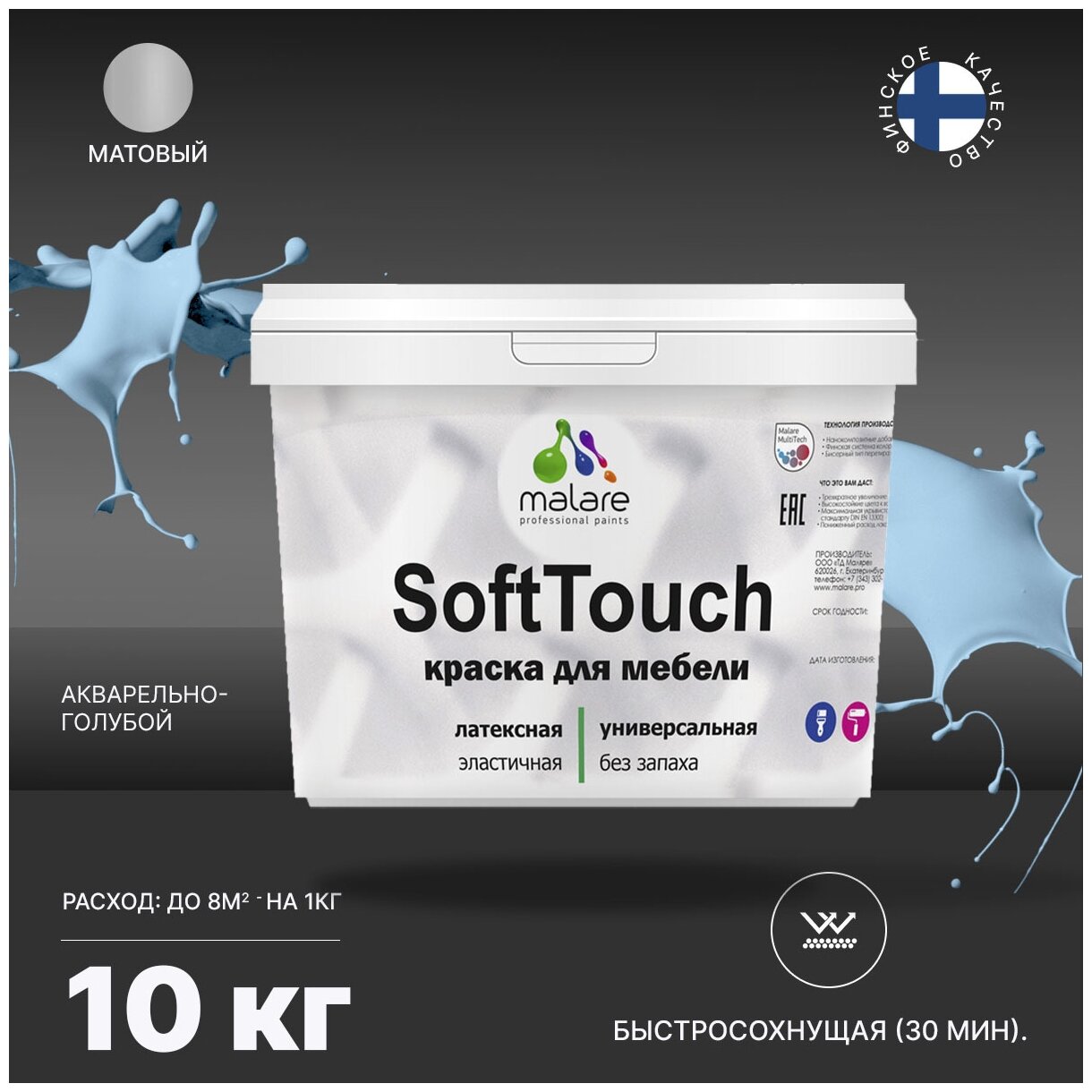 Купить Акриловая краска для мебели Malare SoftTouch для кухонных фасадов для дерева и МДФ, моющаяся быстросохнущая, матовая, акварельно-голубой, 10 кг.