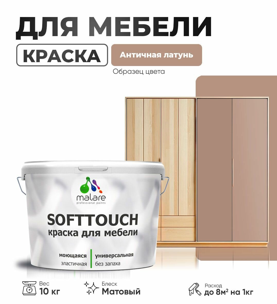 Купить Акриловая краска для мебели Malare SoftTouch для кухонных фасадов для дерева и МДФ, моющаяся быстросохнущая, матовая, античная латунь, 10 кг.