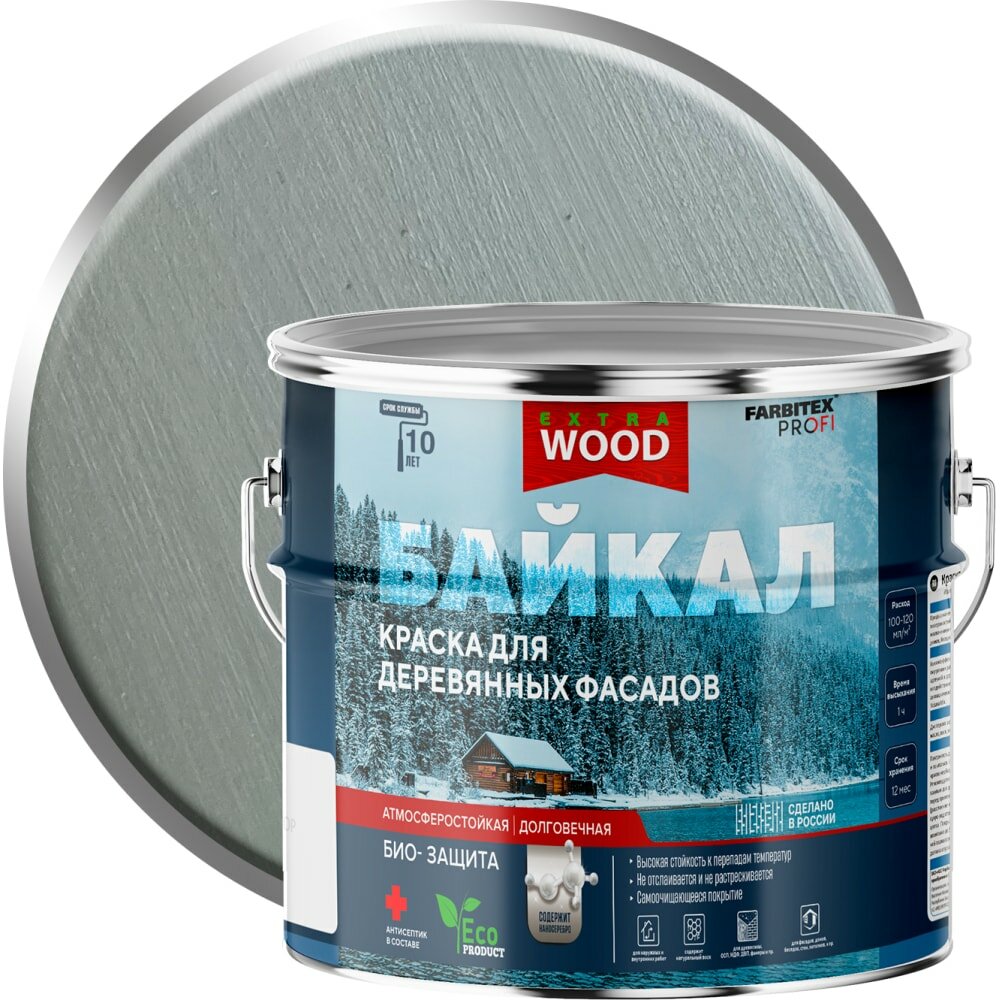 Краска Farbitex Profi Wood Extra Байкал для деревянных фасадов и интерьеров, полярная дымка, 2,5 л