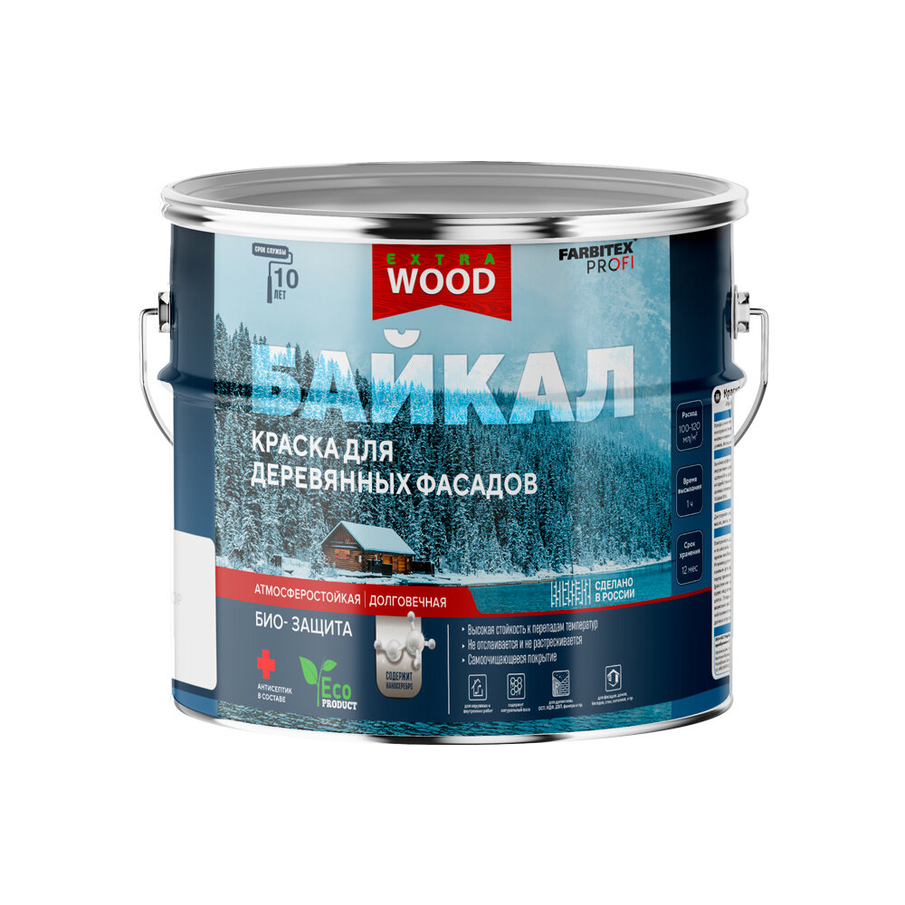 Краска для дерева, фасадов и интерьеров байкал FARBITEX PROFI WOOD EXTRA База А 9 л