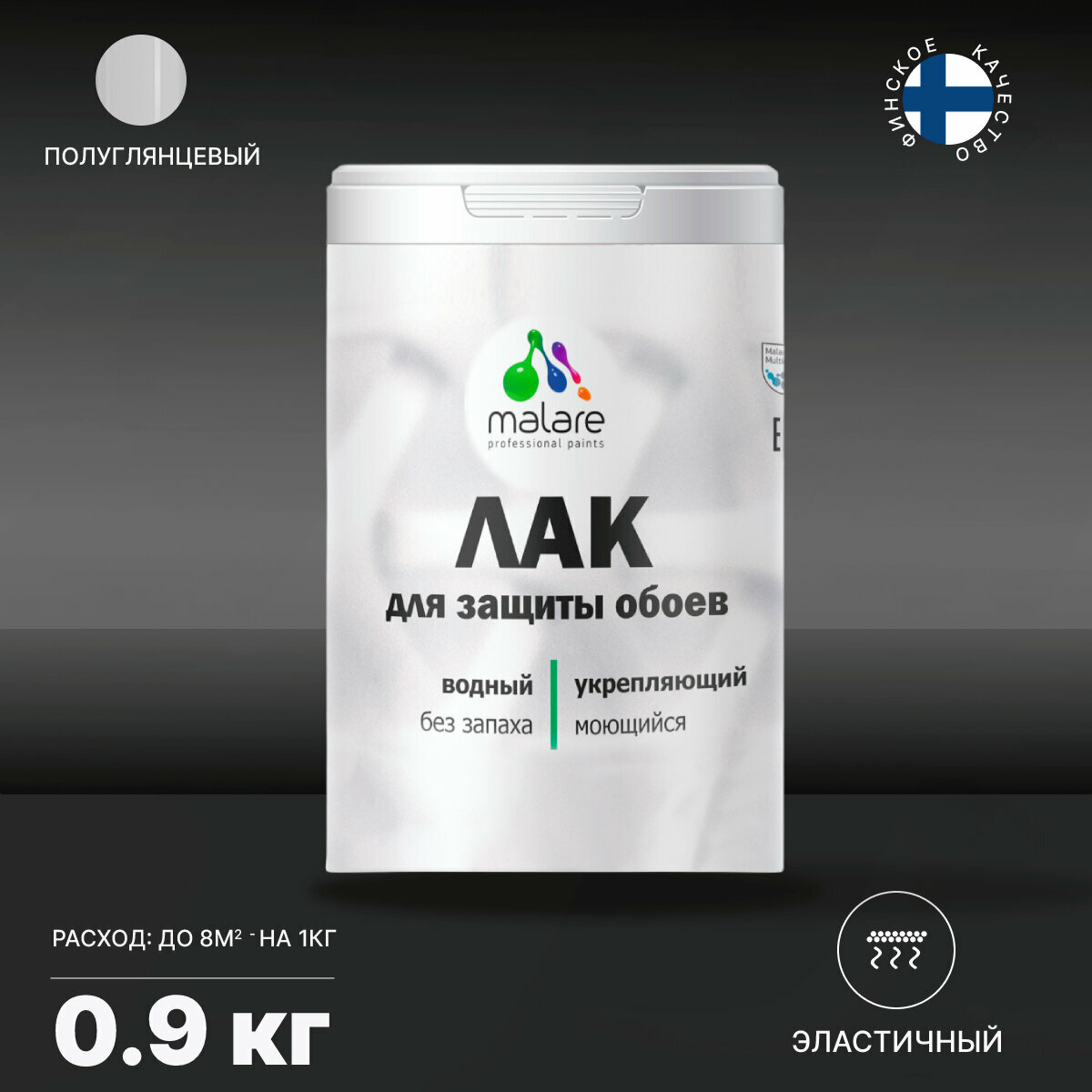 Лак для защиты обоев Malare Professional универсальный для дерева и минеральных поверхностей, водный без запаха быстросохнущий, бесцветный, полуглянцевый, 0.9 кг