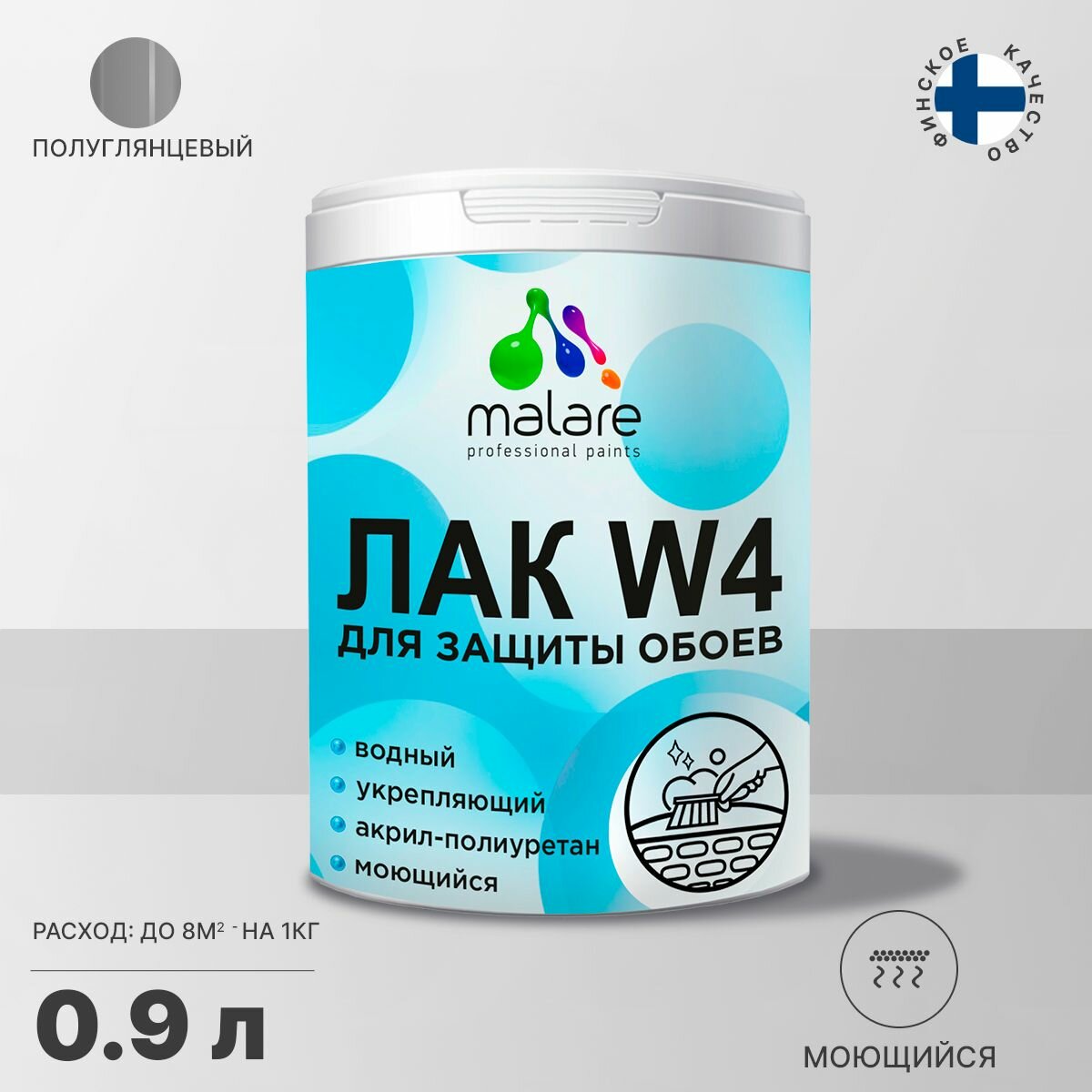 Купить Лак Malare Professional для защиты обоев, для дерева и минеральных поверхностей, высокопрочный, без запаха, полиуретановый, бесцветный, 0,9 кг