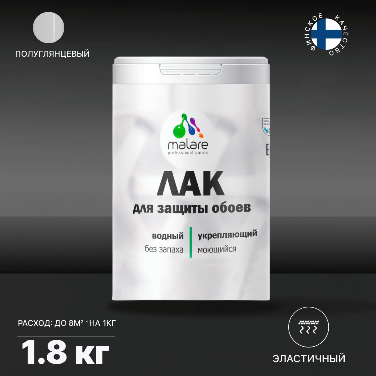 Лак для защиты обоев Malare Professional универсальный для дерева и минеральных поверхностей, водный без запаха быстросохнущий, бесцветный, полуглянцевый, 1,8 кг