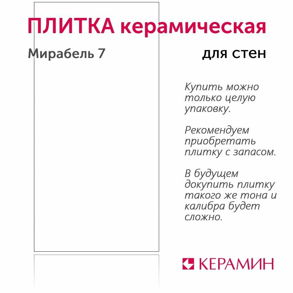 Ниже Вы можете прочитать отзывы на Плитка керамическая Керамин Мирабель 7 60х30 см (11 шт. 1.98 м2), ознакомится с подробными характеристиками, посмотреть интересные обзоры и фотографии на Плитка керамическая Керамин Мирабель 7 60х30 см (11 шт. 1.98 м2).