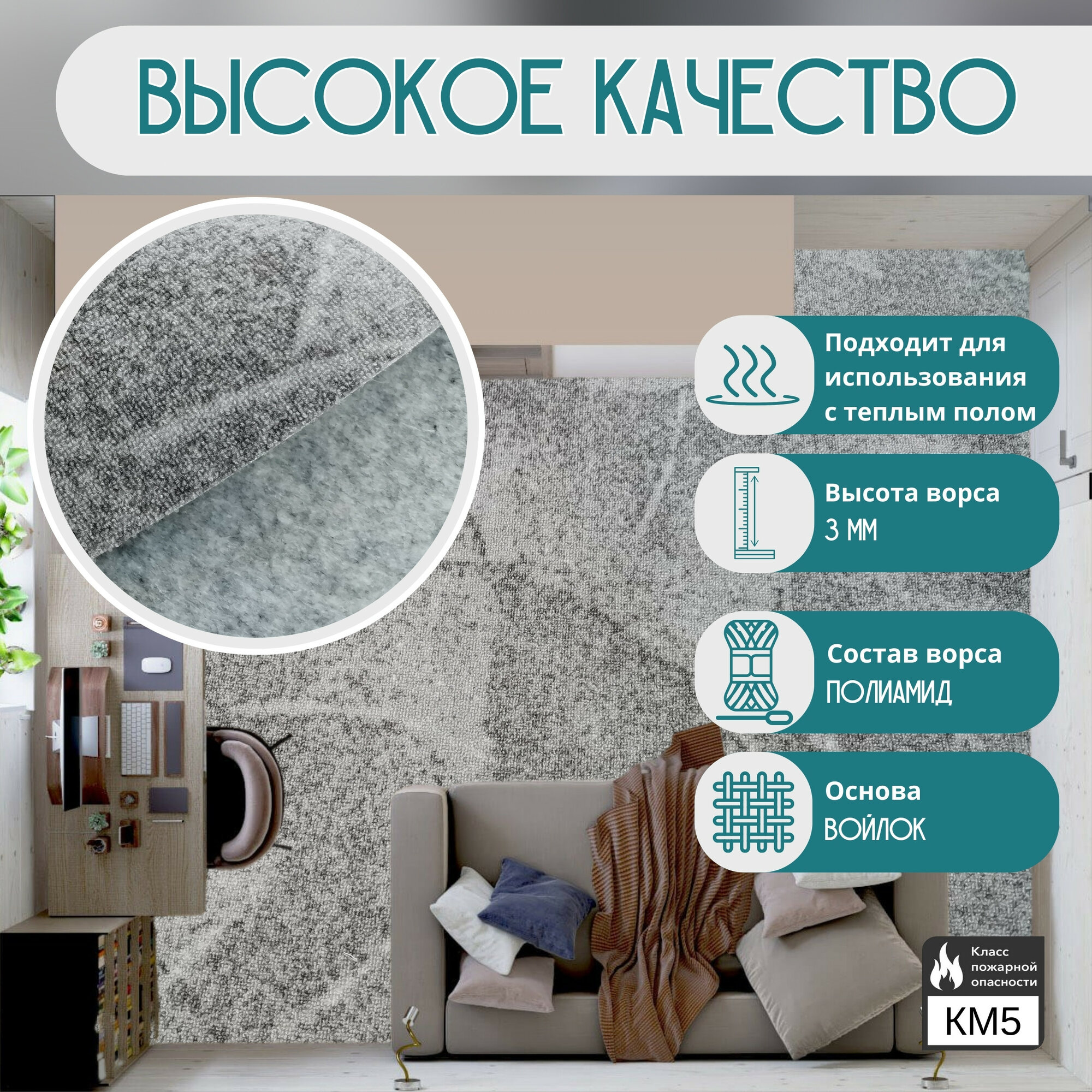 Ковролин метражом 2,5х3 м, без ворса "Серый Туман", серый без оверлока