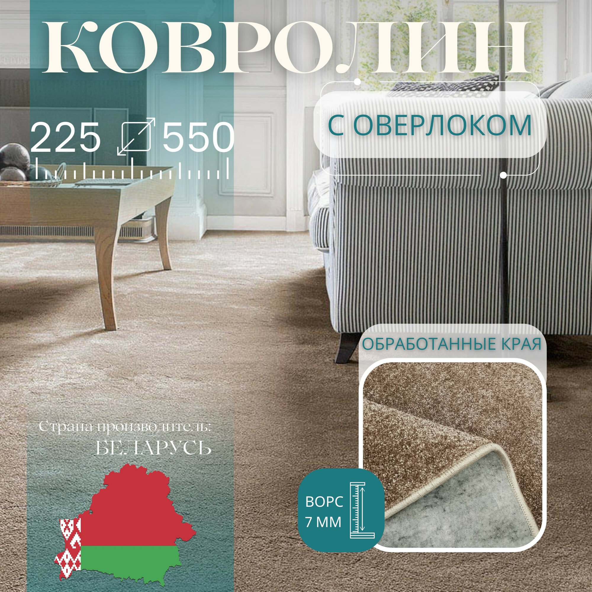 СохранитьКовролин метражом 2,25х5,5 м, с оверлоком "Линеар", коричневый интересное: