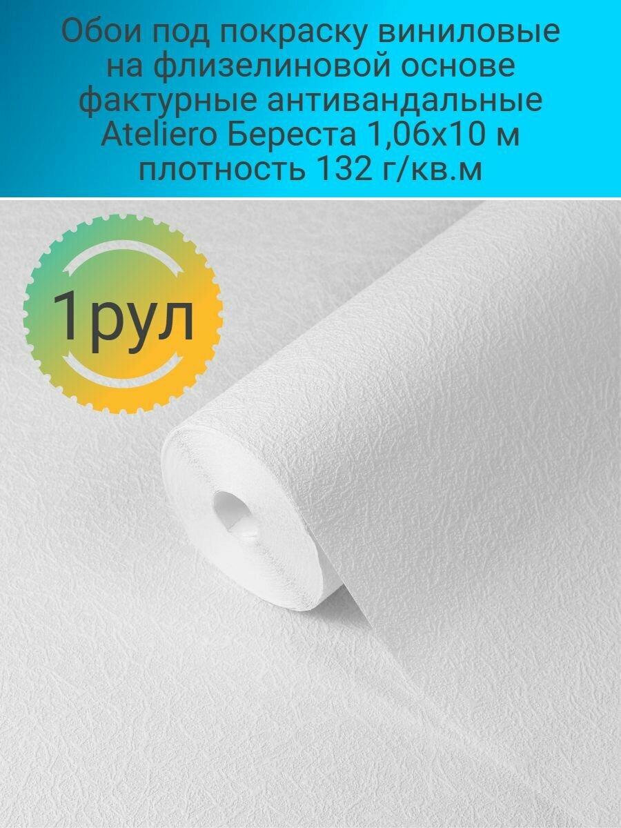 Обои под покраску виниловые на флизелиновой основе фактурные антивандальные Ateliero Береста 1003АВ (1,06х10 м) плотность 132 г/кв.м интересное:
