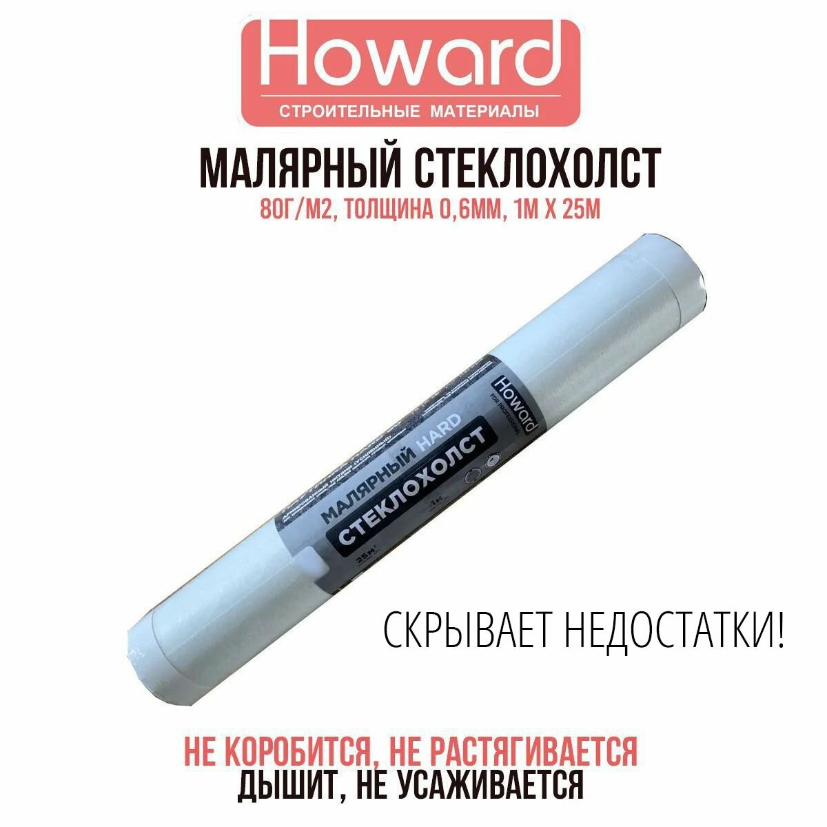 Стеклохолст HOWARD HARD 80 армированный сеткой 80г/м2, толщина 0,6 мм HW25ARM интересное: