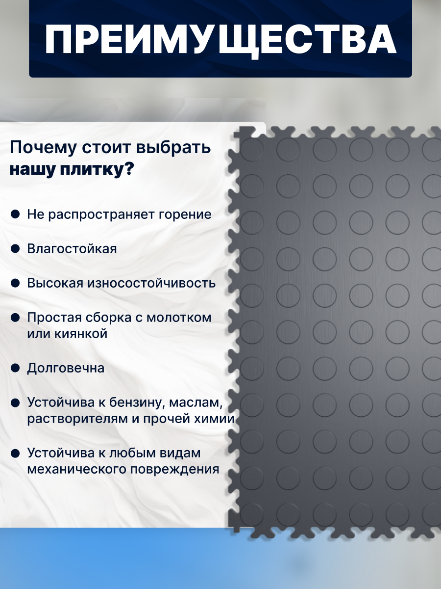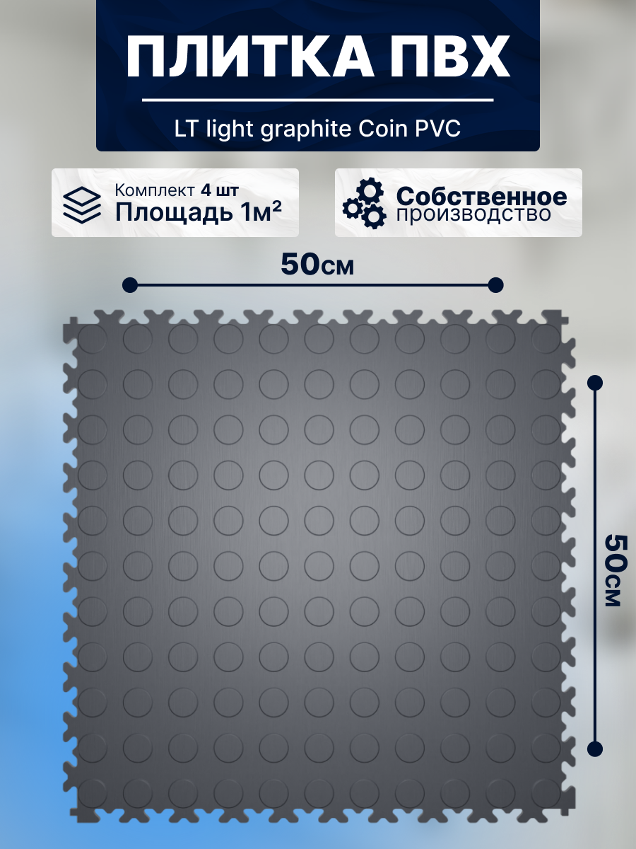 Ниже Вы можете прочитать отзывы на Плитка ПВХ модульная на пол LT light graphite Coin PVC 500X500X5мм 43 класс, ознакомится с подробными характеристиками, посмотреть интересные обзоры и фотографии на Плитка ПВХ модульная на пол LT light graphite Coin PVC 500X500X5мм 43 класс.