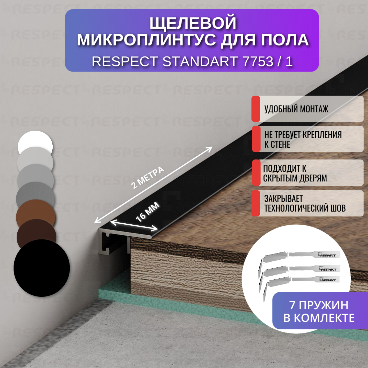 СохранитьПлинтус напольный щелевой для пола 2 метра 1 шт., цвет черный матовый интересное: