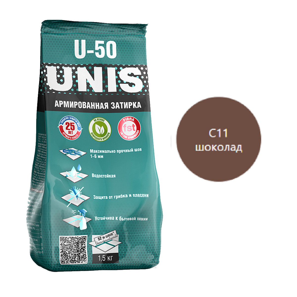 Затирка UNIS U-50 Шоколад С11 1,5 кг, сухая смесь, противогрибковая