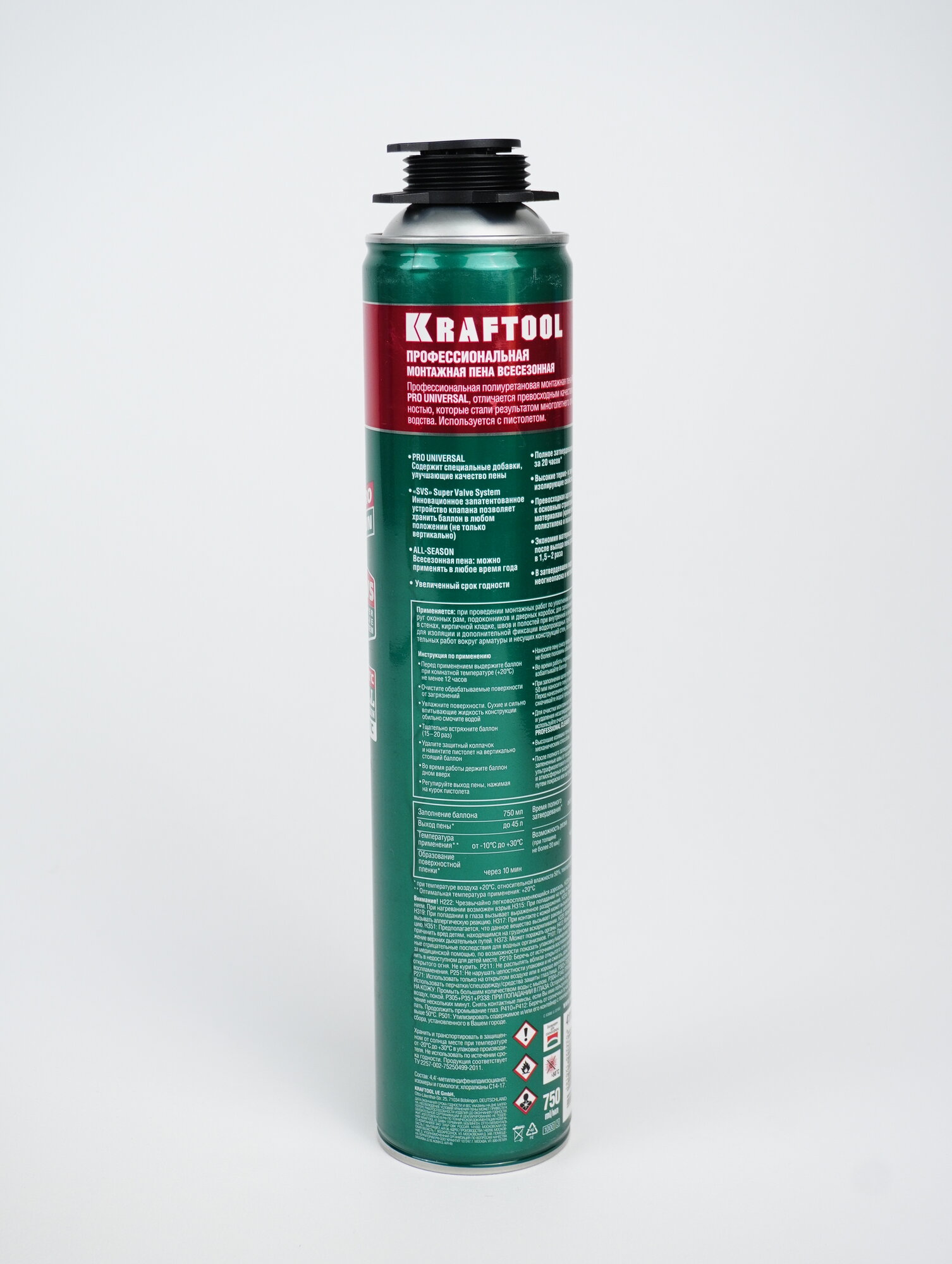 Монтажная пистолетная всесезонная пена KRAFTOOL Pro выход до 45л 750мл SVS не залипающий клапан 41182