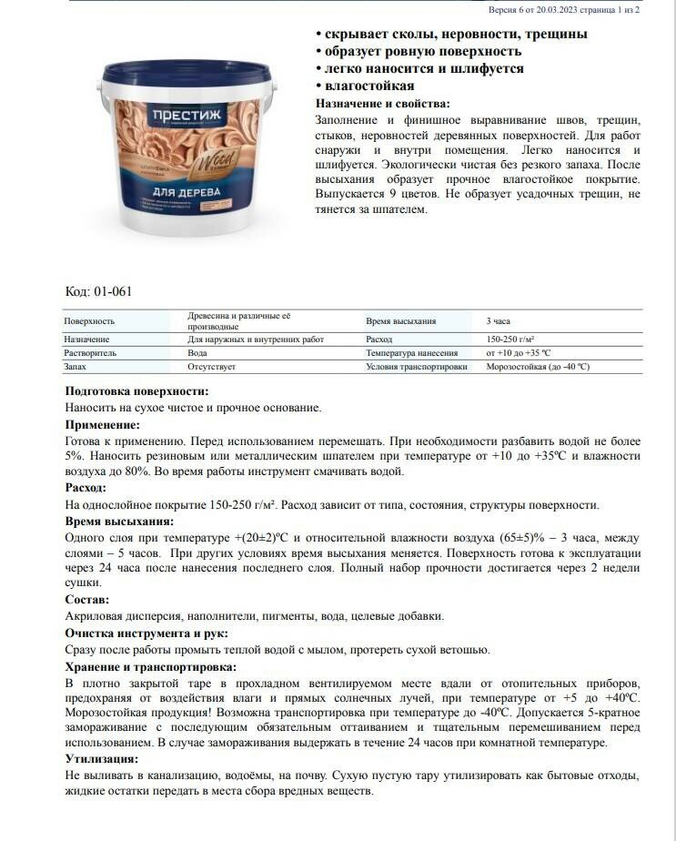 Престиж шпатлевка ПО дереву ДУБ 1 КГ (1/6) 264297 интересное: