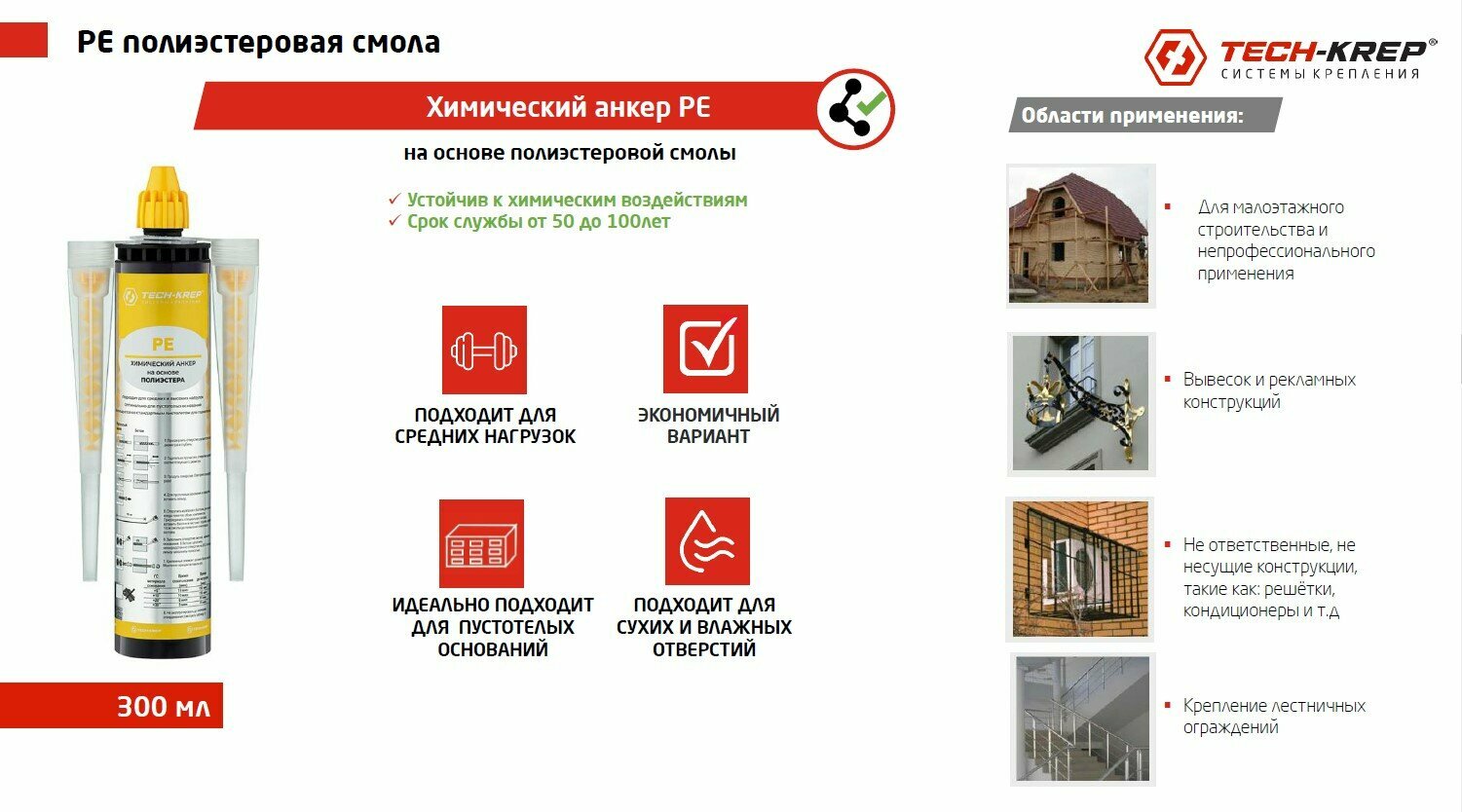 Tech-Krep Химический анкер PE POLYESTER 300мл 155929 интересное: