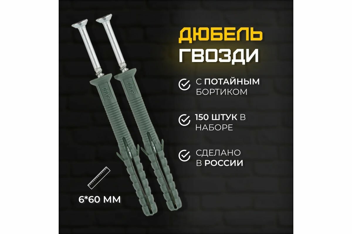 Дюбель-гвоздь 6х60 мм, потай (150 шт.) интересное: