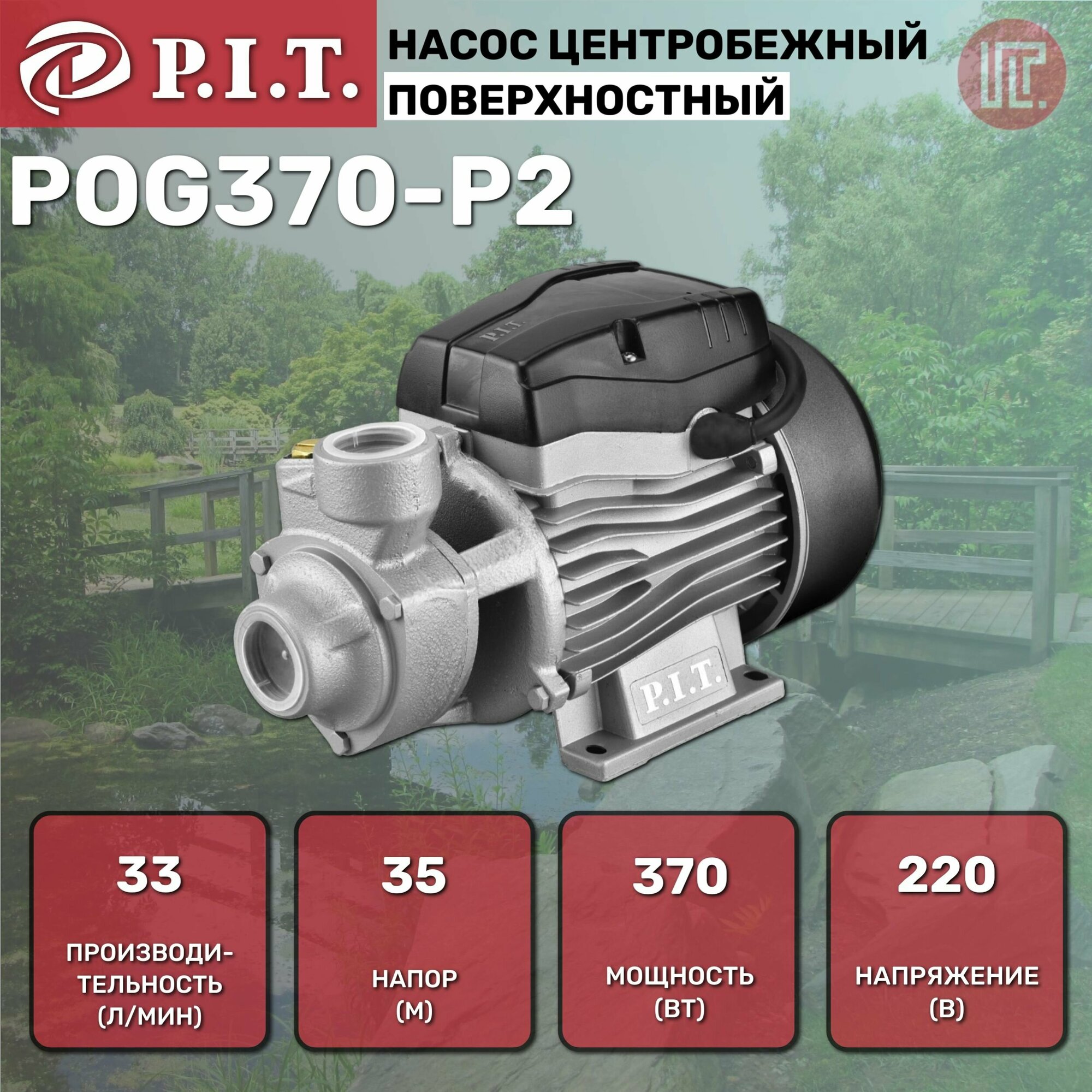 Купить Насос центробежный поверхностный P.I.T. POG370-P2, 370Вт, напор 35м, 33л/мин,