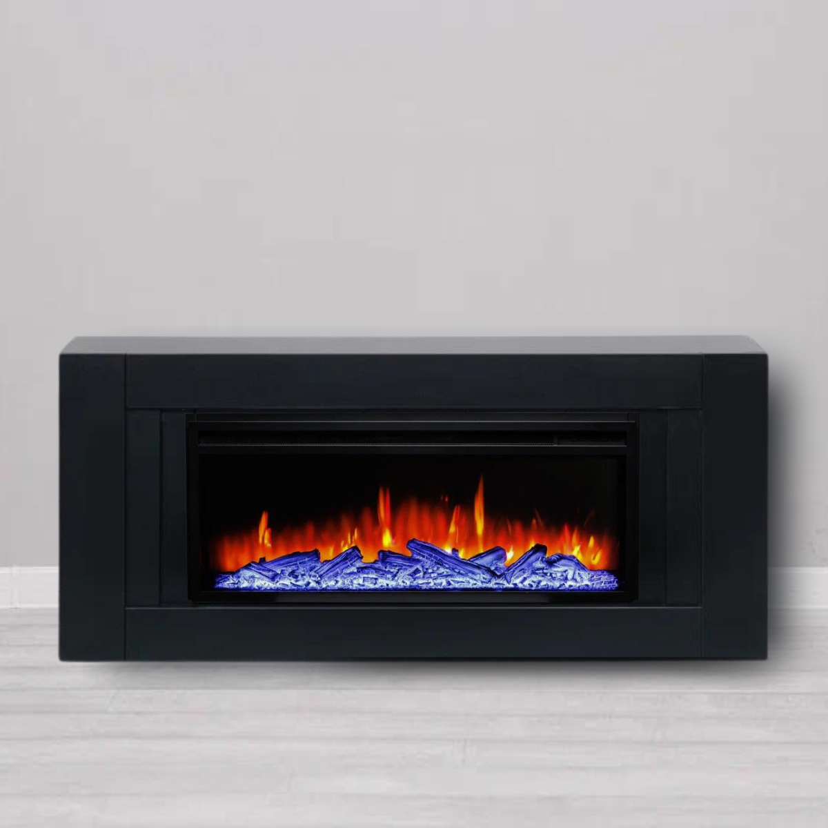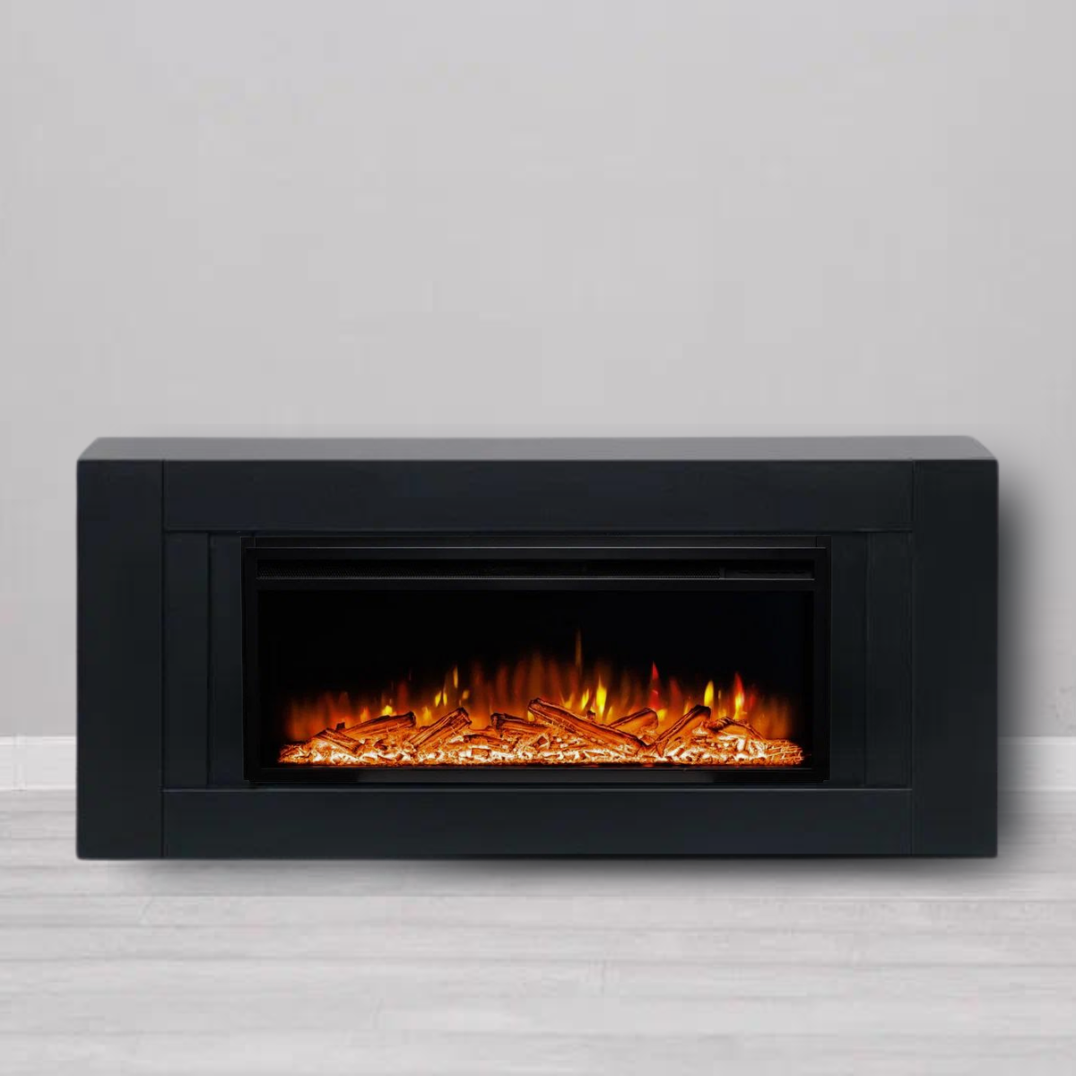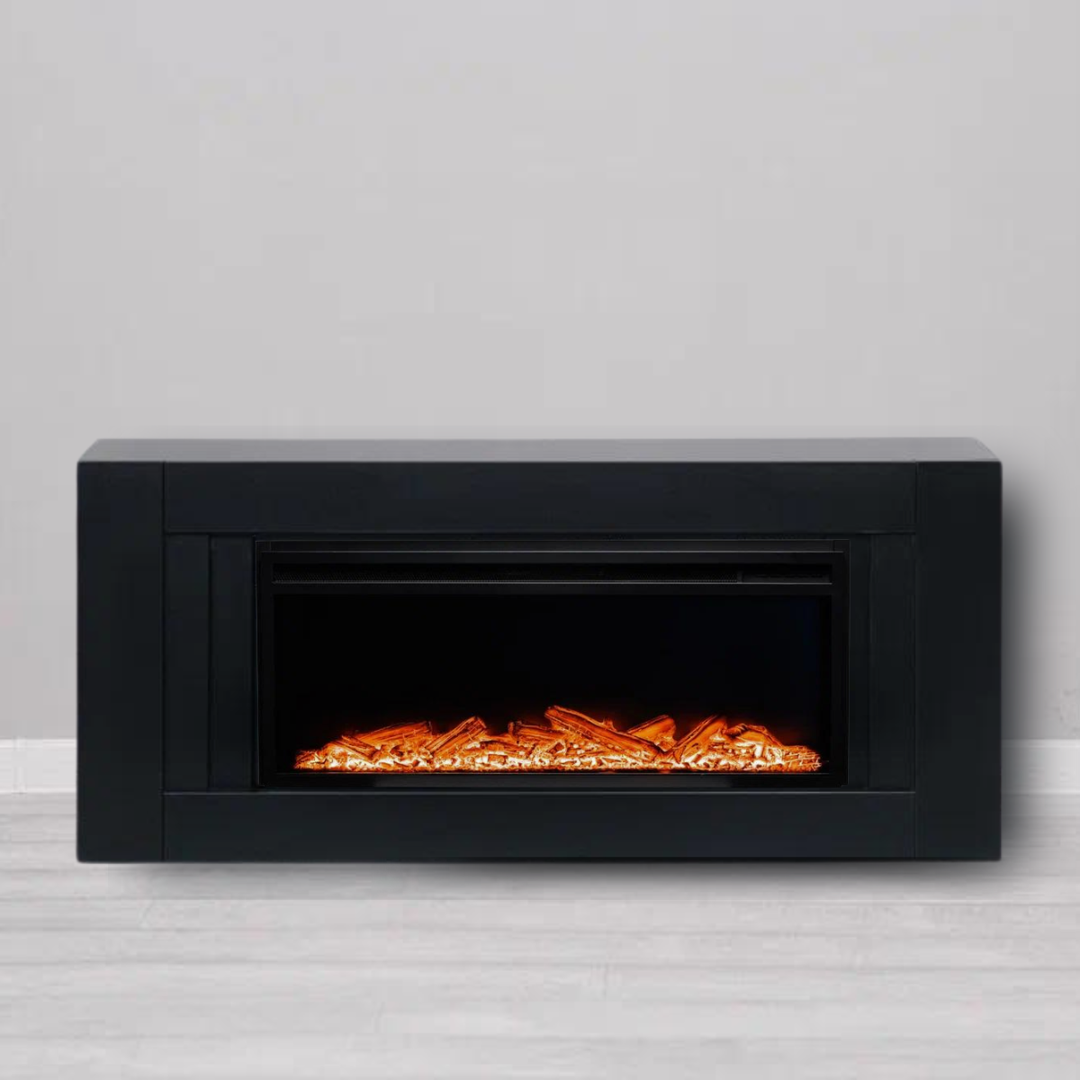 Купить Камин электрический ELEKAM Lines чёрный с очагом Pulsar 38 с дровами с обогревом и звуком потрескивания (Электрокамин)