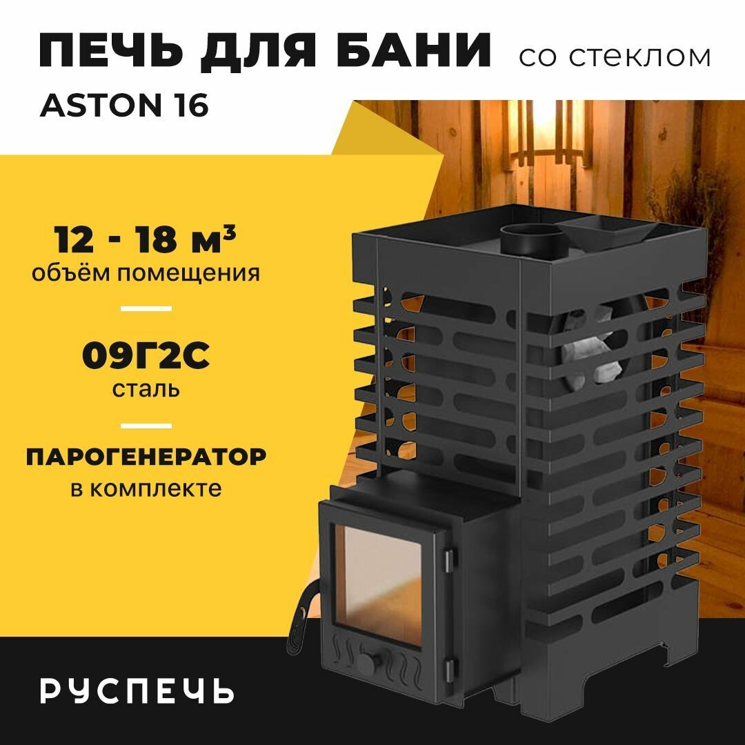 СохранитьПечь для бани ASTON 16 дровяная с закрытой каменкой и стеклом интересное: