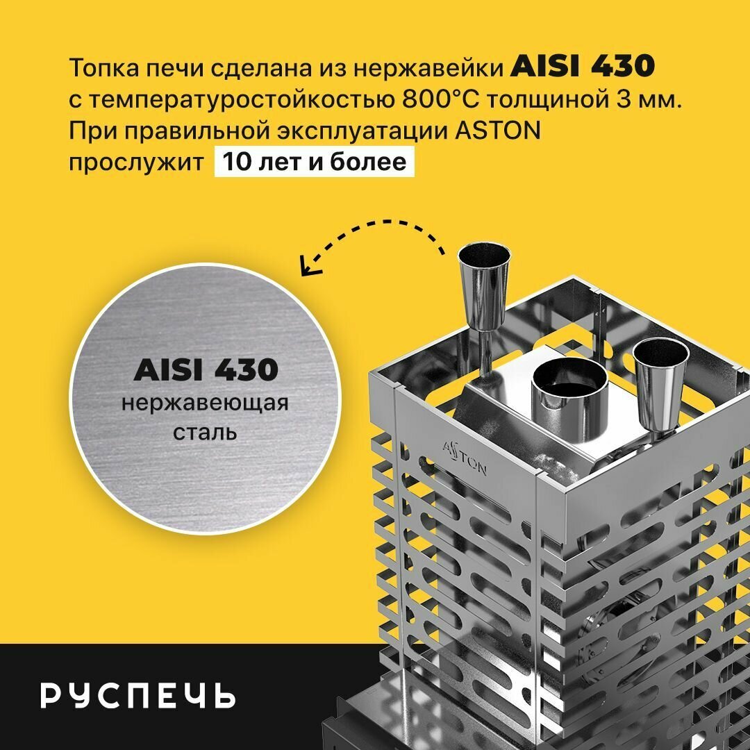 СохранитьПечь для бани ASTON 20 INOX дровяная с закрытой каменкой и стеклом интересное: