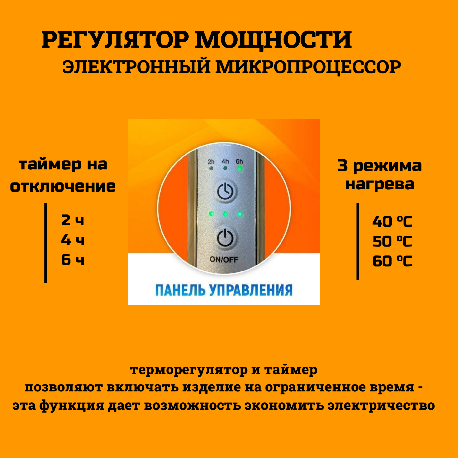 | Особенности | кнопка включения/выключения, с таймером, терморегулятор |