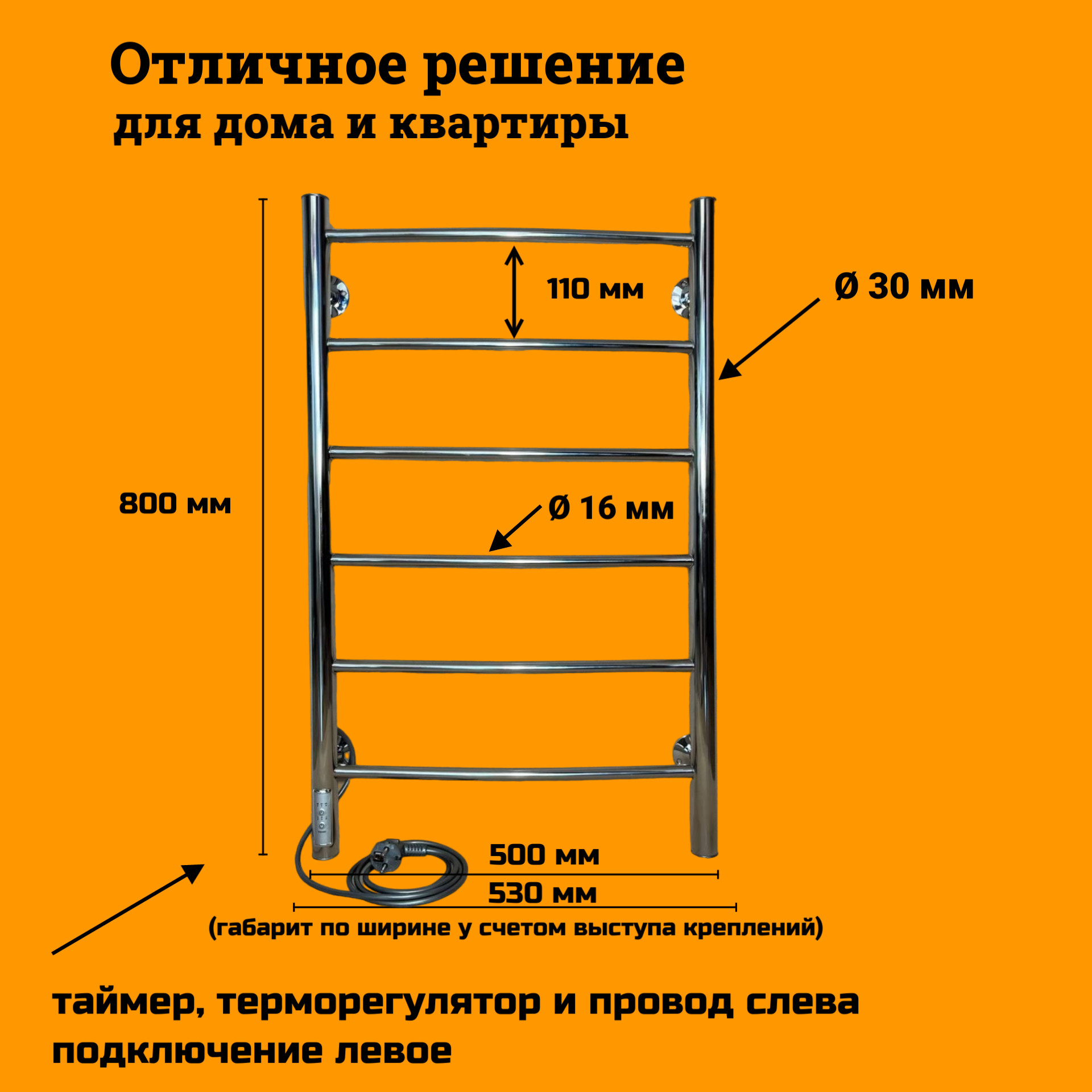 Полотенцесушитель электрический РуДизайн нерж. 500х800 подключение и терморегулятор слева интересное: