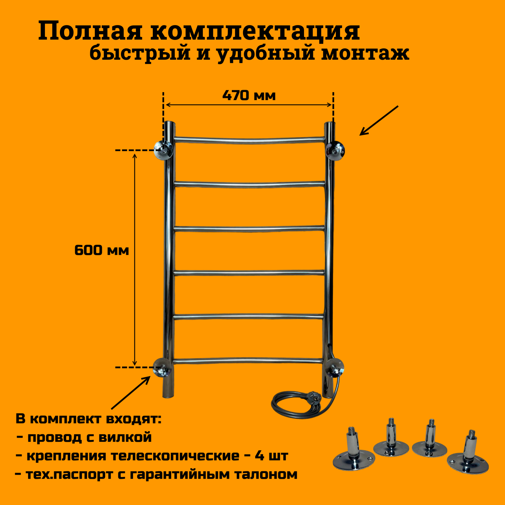 Полотенцесушитель электрический РуДизайн нерж. 500х600 подключение и терморегулятор слева