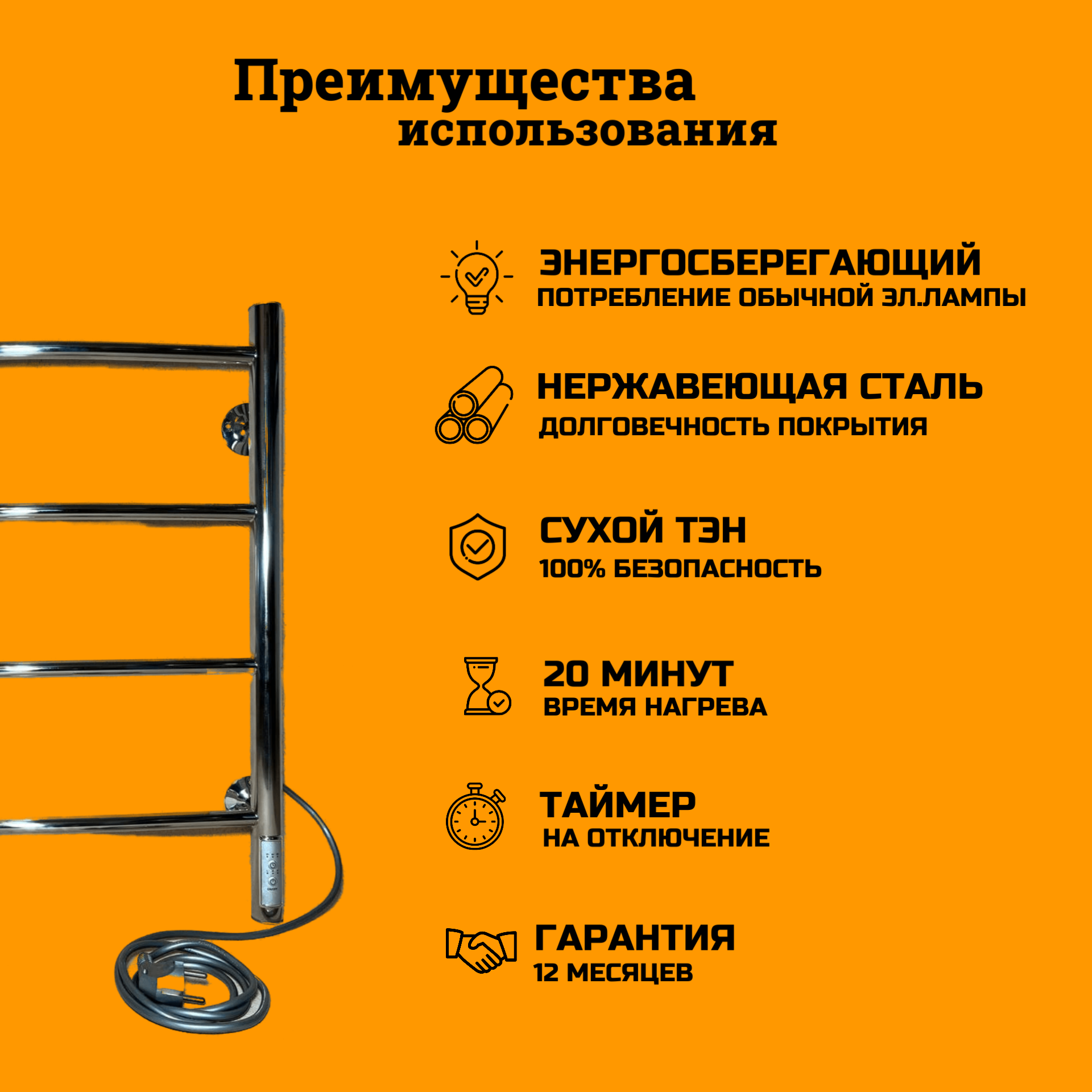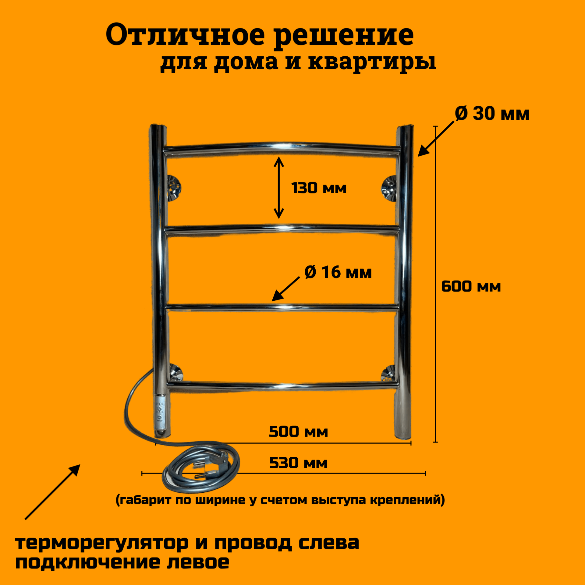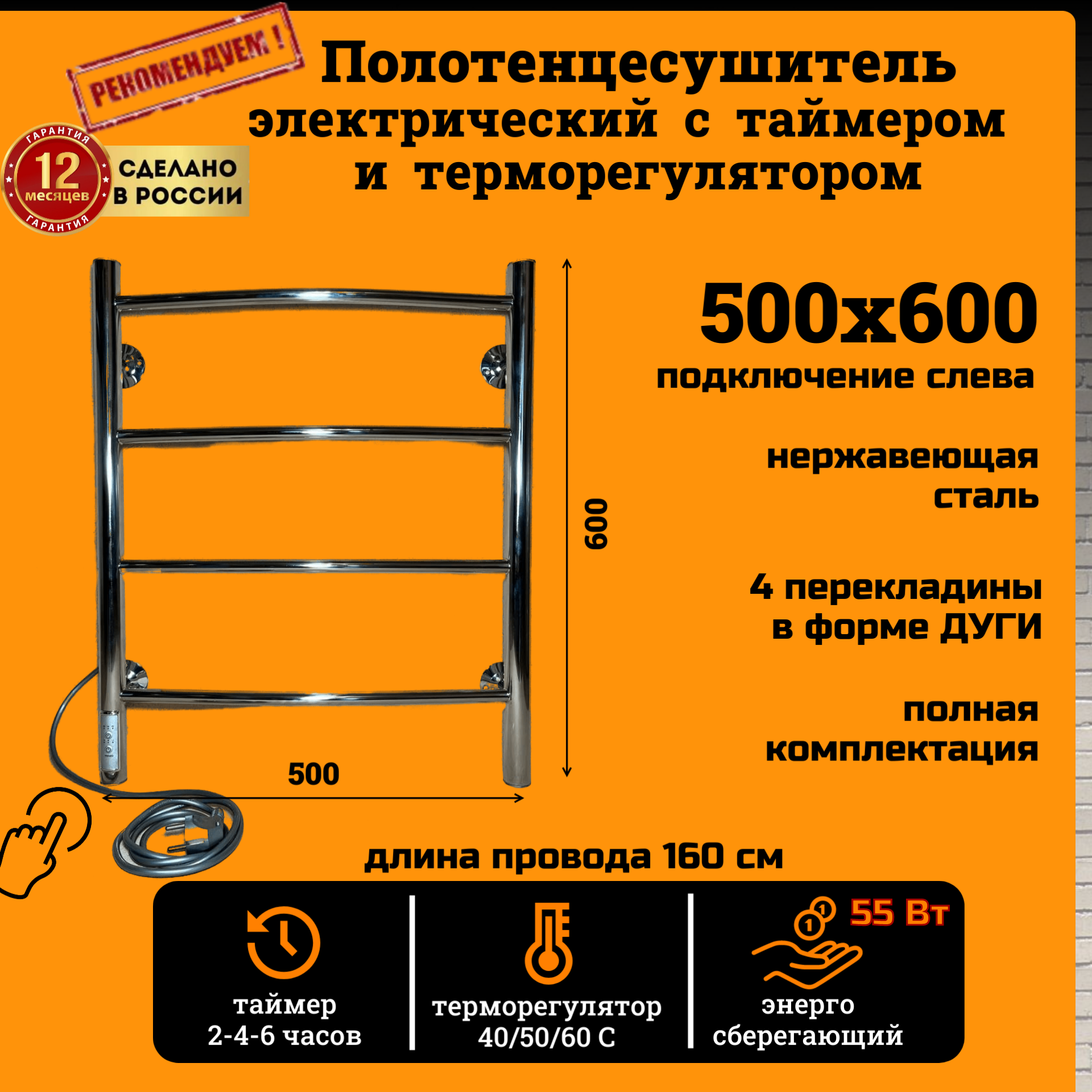 Купить Полотенцесушитель электрический РуДизайн нерж. 500х600 подключение и терморегулятор слева