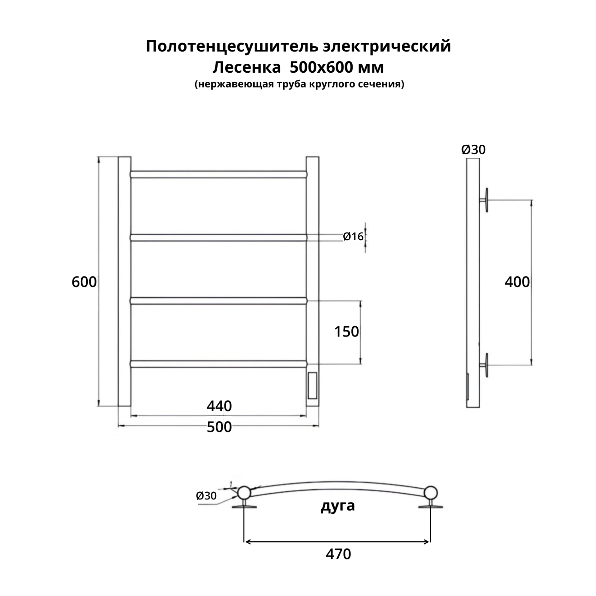 Полотенцесушитель электрический РуДизайн нерж. 500х600 подключение и терморегулятор слева интересное: