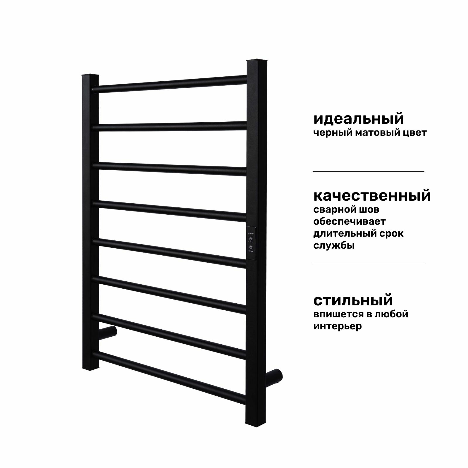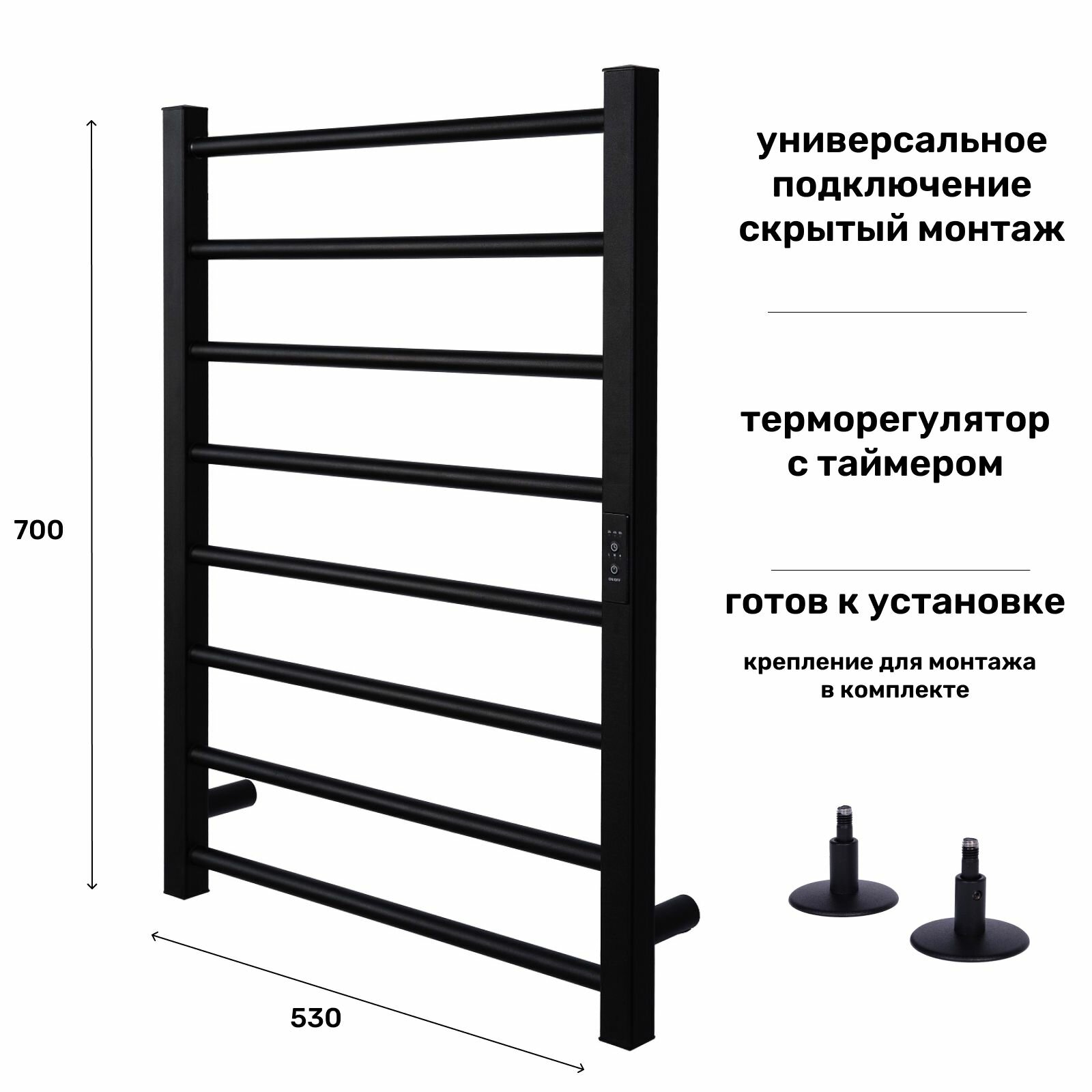 Купить Полотенцесушитель электрический с терморегулятором Лесенка Грация 500*700 черный матовый универсальное подключение