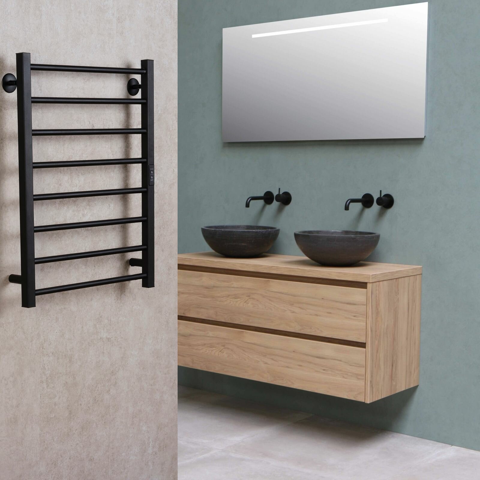 Полотенцесушитель электрический с терморегулятором 400х700 черный матовый универсальное подключение
