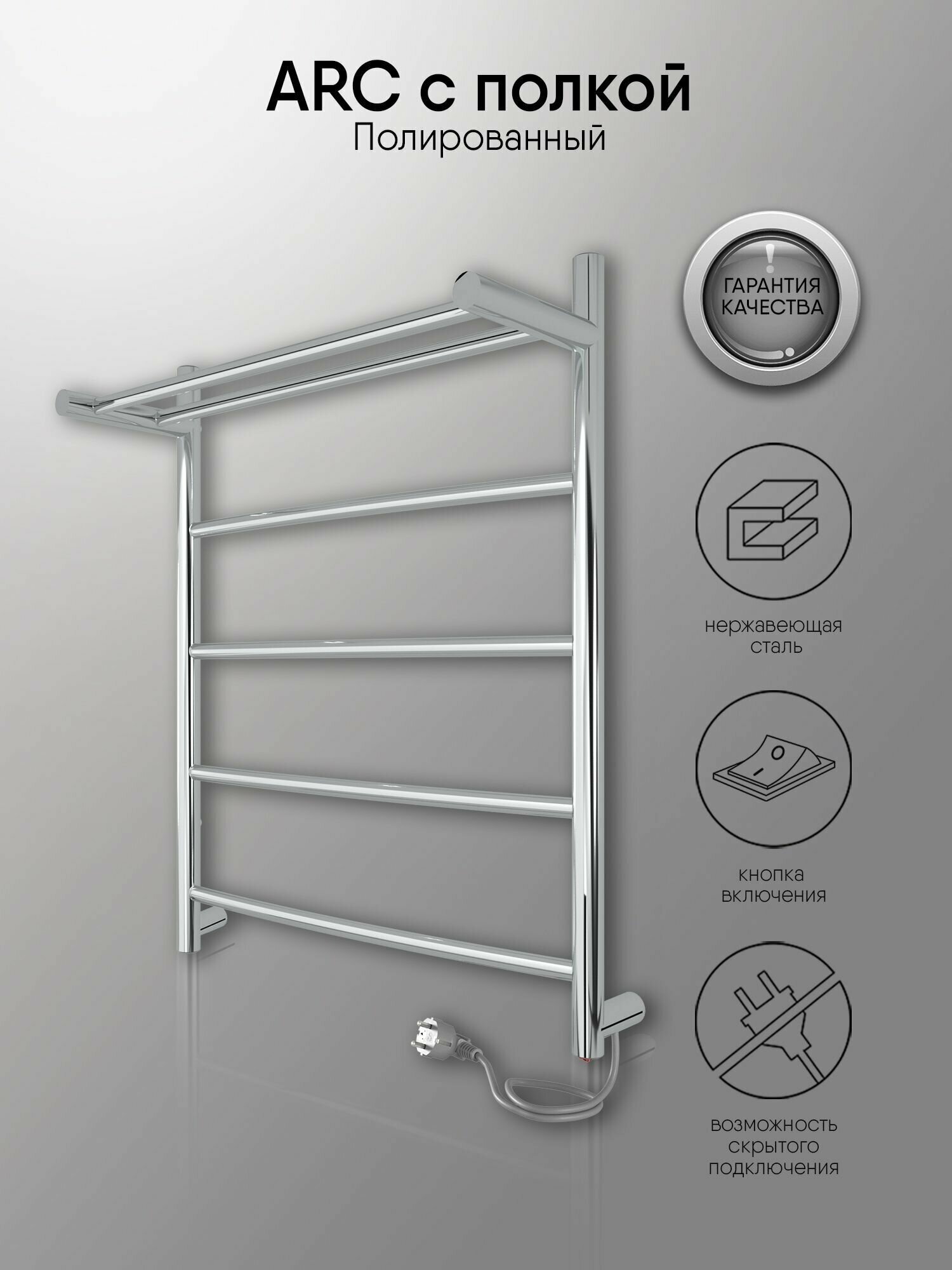 Полотенцесушитель электрический INDIGO Arc 60/50 с полкой Хром полированный (универсальное подключение, скрытый монтаж) интересное: