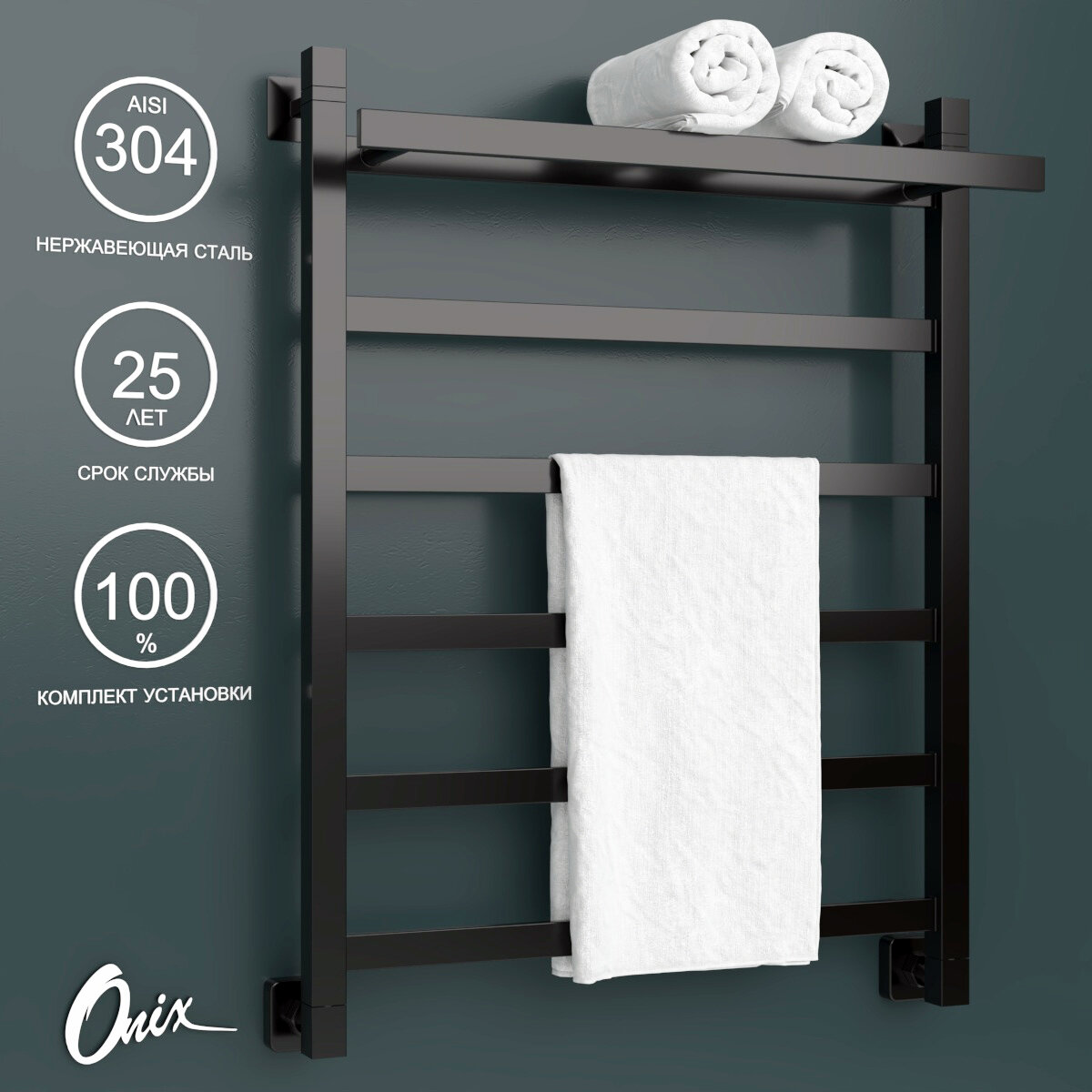 Водяной полотенцесушитель Onix, модель Moon Plus Black 500x800, лесенка с полкой с нижним подключением, черный, полный комплект