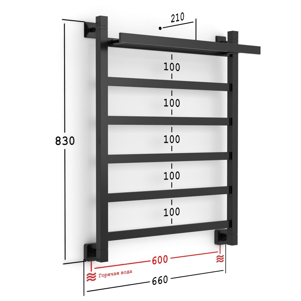 Купить Водяной полотенцесушитель Onix, модель Moon Plus Black 600x800, лесенка с полкой с нижним подключением, черный, полный комплект